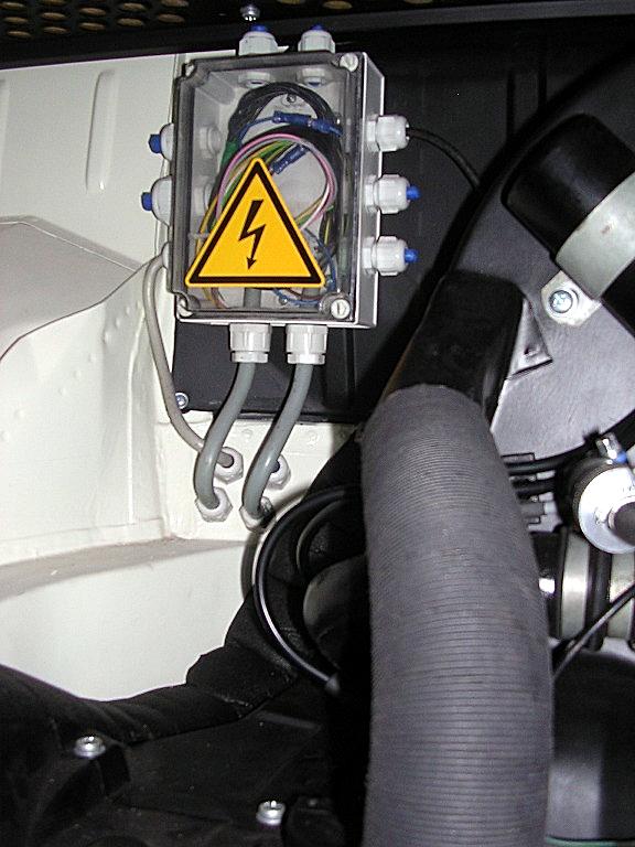 im motorraum hab ich dann auf der linkenseite eine dose auf der schottwand montiert, da laufen die drei kabel rein.