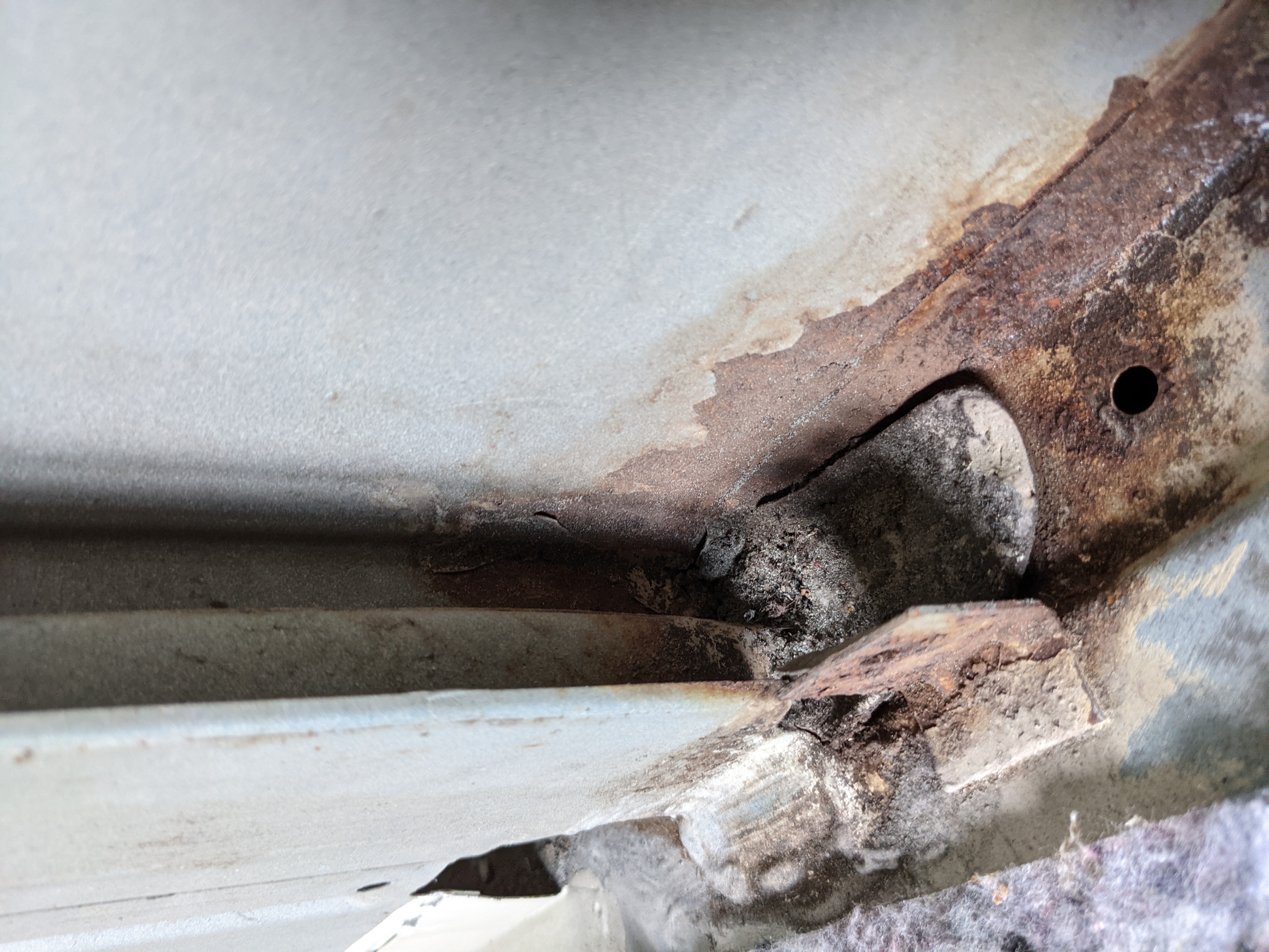 das ist nur Dichtmasse, weil das Bodenblech an der Stelle nicht 100% zur Säule hin abdichtet.
