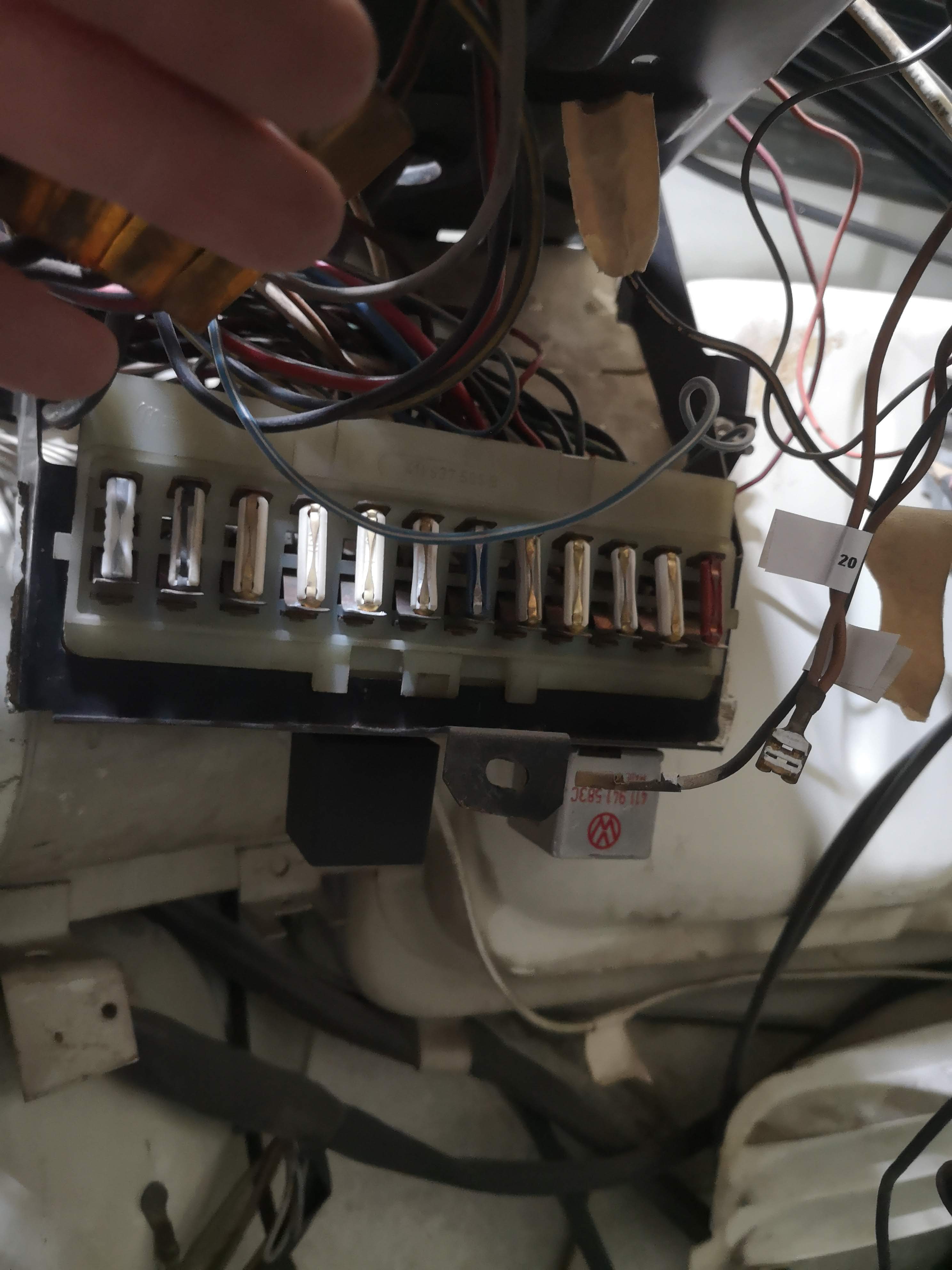 Zuvor muss ich aber die Verkabelung überprüft und den Sicherungskasten richtig einbauen. Bisher hing der Sicherungskasten lose rum.