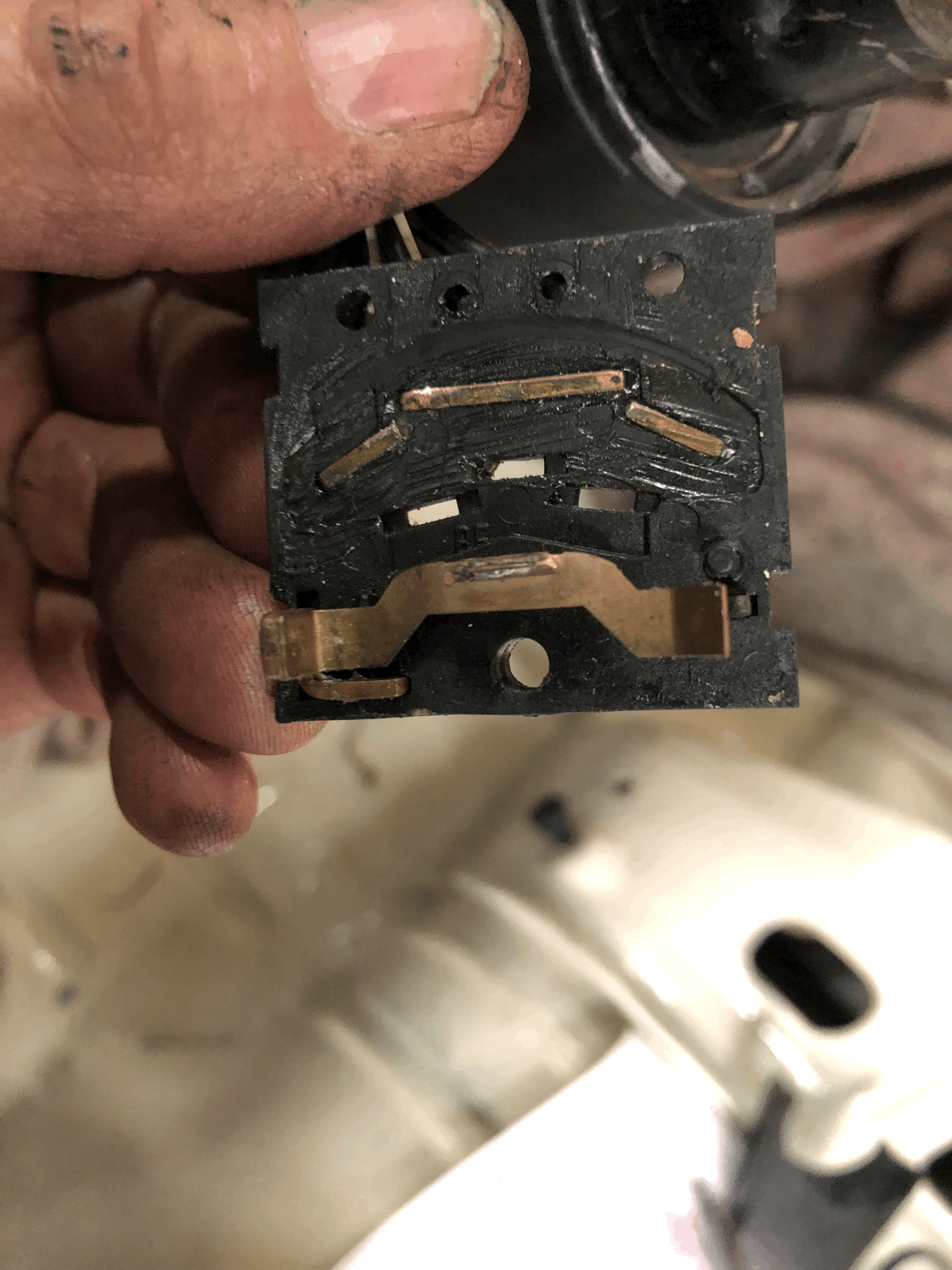 BTW: Ich habe die Kontakte um 180° gedreht, so laufen dann die nicht abgenutzten aufeinander, was die Lebenszeit des Schalters verlängert.