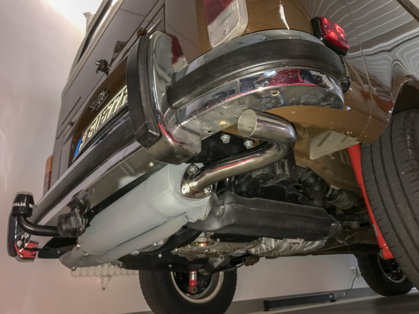 Hier wären die Wärmetauscher komplett, aber der Endtopf ist ein Nachbauteil ohne E-Nummer:
