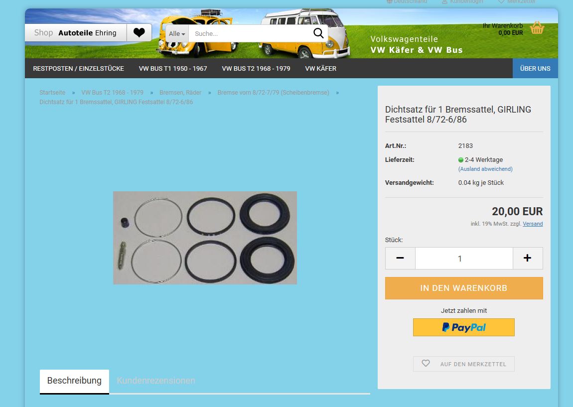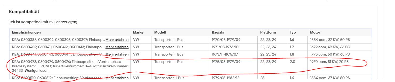 Norbert ich habe bei Wagenteile geschaut und da steht das nur die nackten Sättel angeboten werden. Bei Ehring ist ein wenig mehr dabei https://www.autoteile-ehring.de/de/vw-b ... ausch.html und er bietet separat auch den Anbausatz an, aber auch nicht mit allen Teilen https://www.autoteile-ehring.de/de/vw-b ... is-86.html. Klötze müssen sowieso separat gekauft werden. Verdrehsicherung gibt es auch noch https://www.volkswagen-classic-parts.co ... 211615232A.