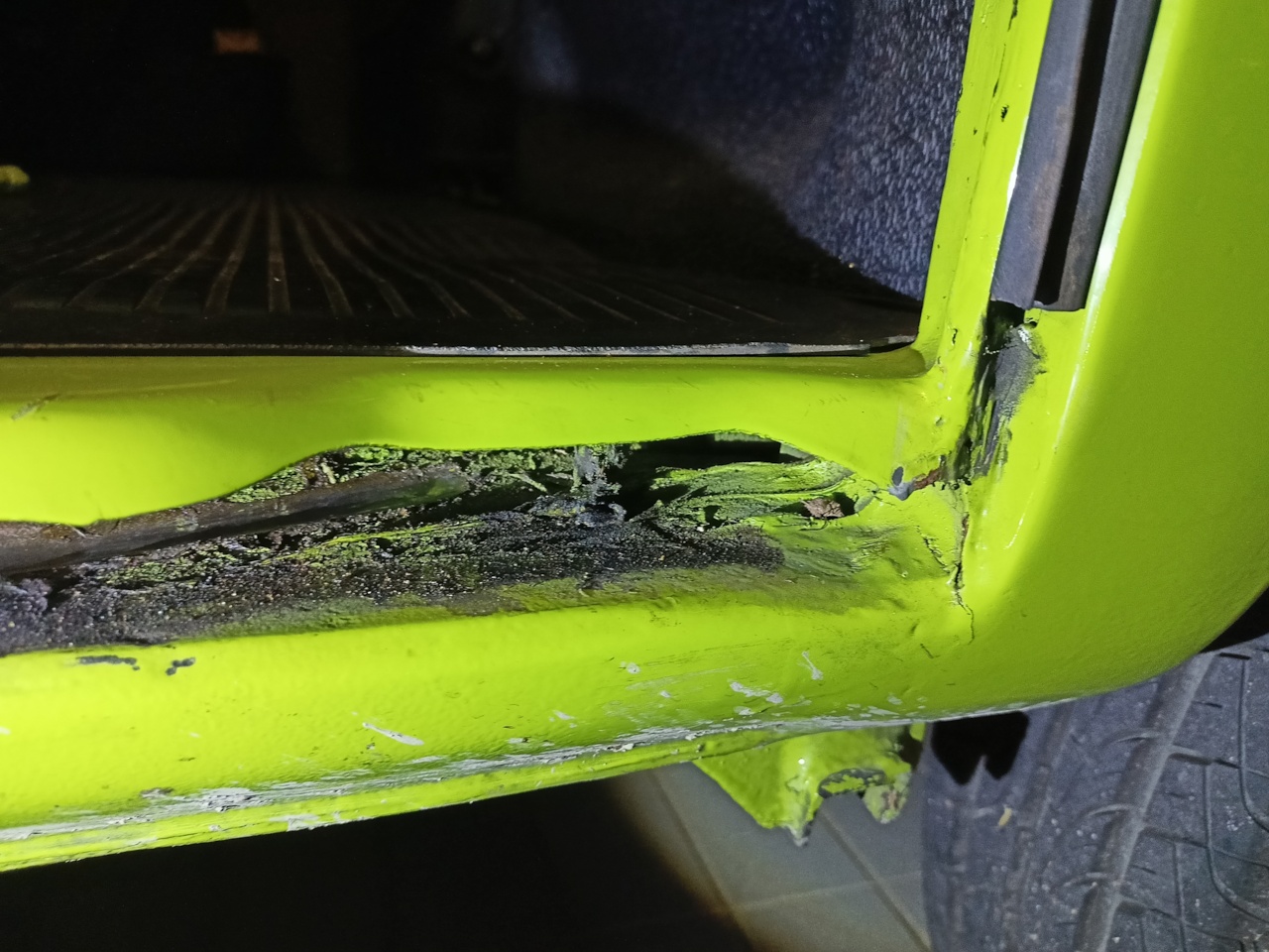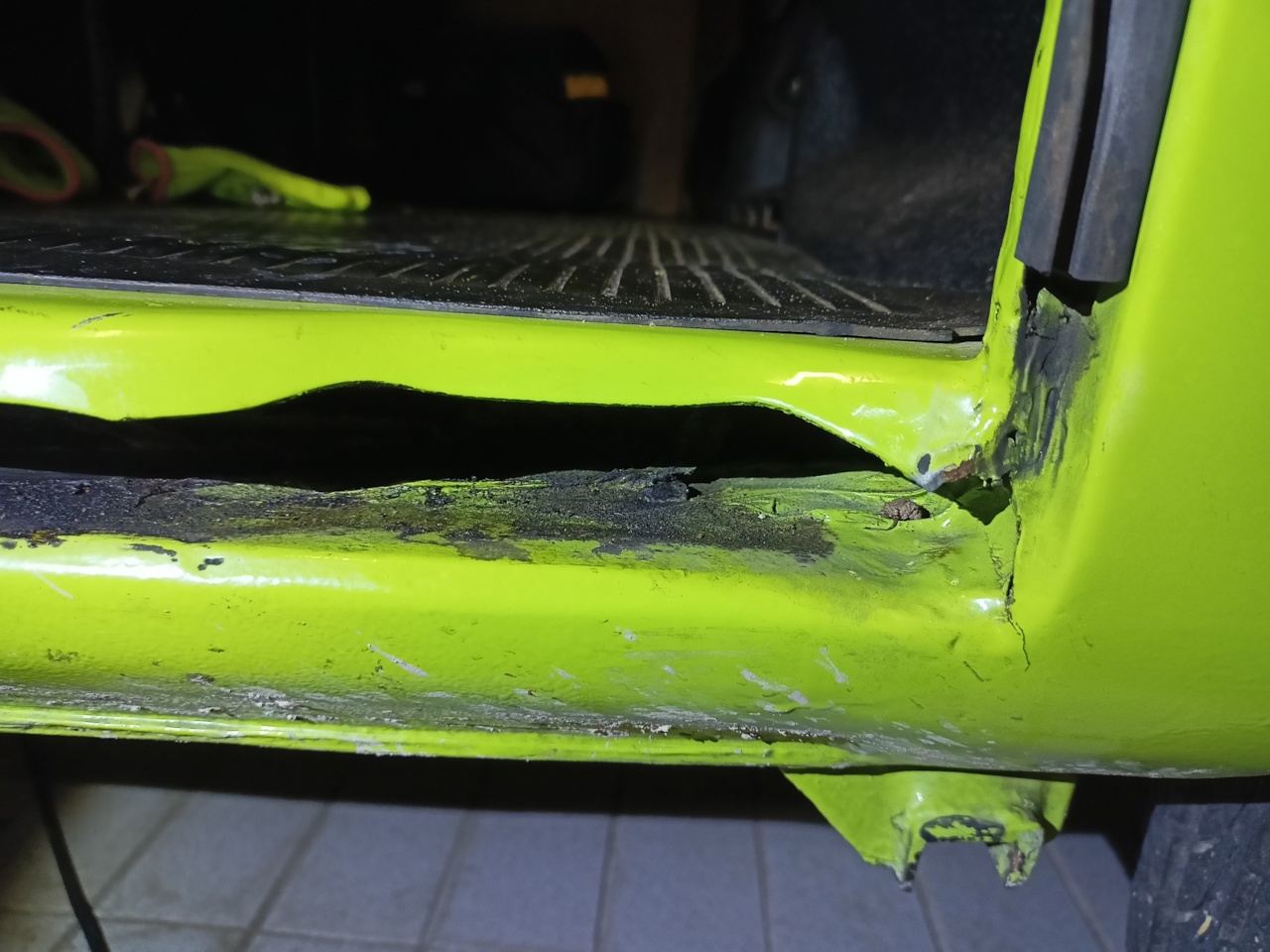 Und die Schweller sind mit Unterbodenschutz aufgespritzt und Spachtelmasse genutzt, denn da fehlen auch die Sicken (Nuten/Vertiefungen/Blechübergänge) unter den Schiebetürenden unten im Schweller. Von den Vorgängern, oder weißt Du selbst was unter der grünen Deckfarbe lauert?