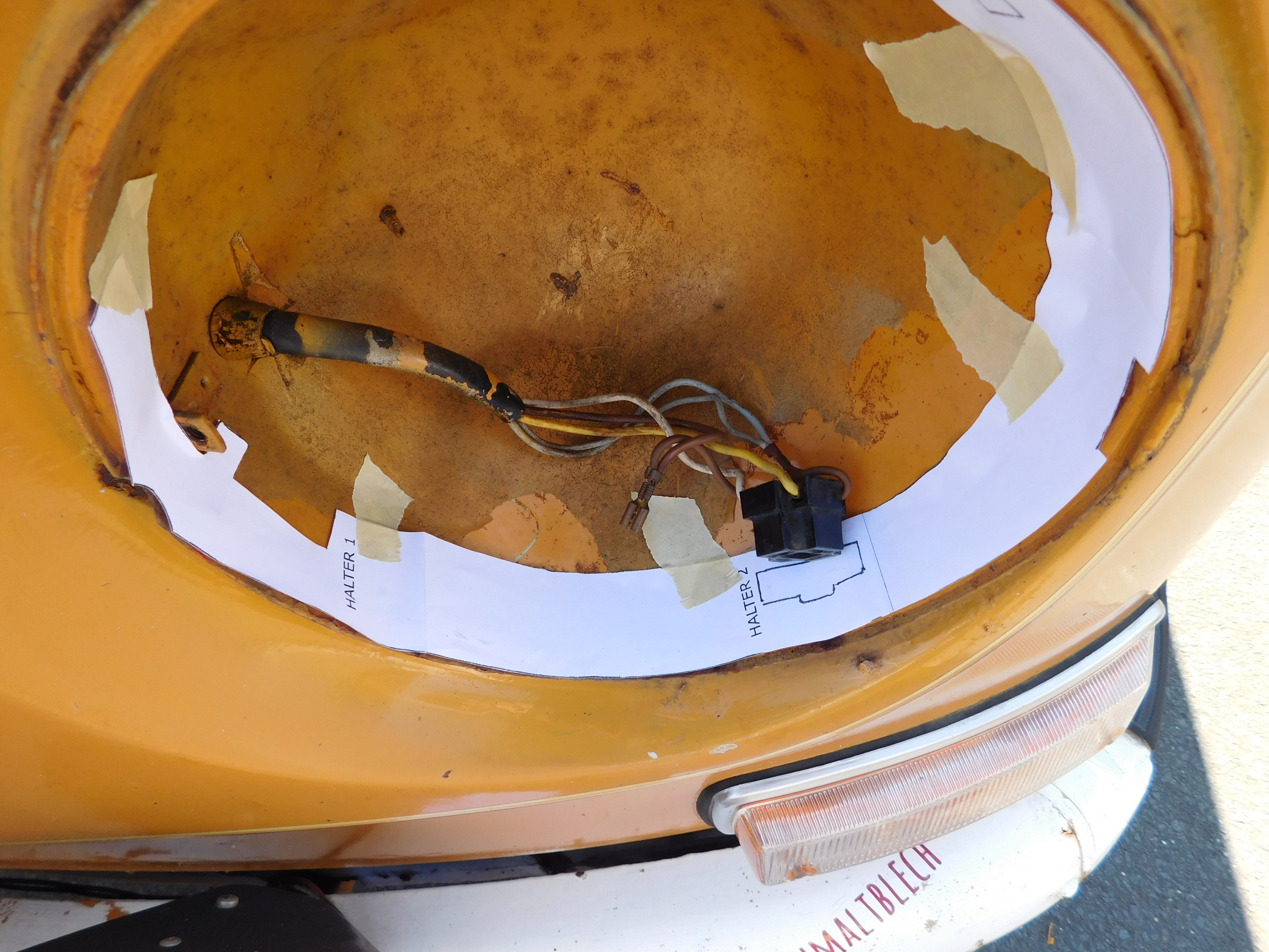 Danach den Scheinwerfer am Halter 1 befestigen, den Chromring drüber, dann alles ausrichten, markieren und die letzten Halter befestigen.