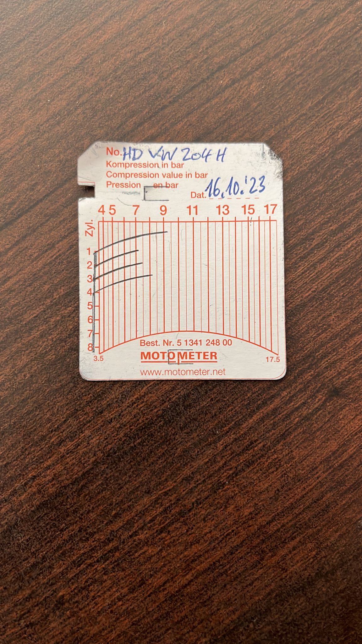 Damit werde ich mich leider auch wieder mit einem etwas älteren Thema beschäftigen müssen: nämlich der unzureichenden Kompression einzelner Zylinder. Ich habe Ende 2023 einen Kompressionstest durchführen lassen (siehe Foto). Diesen werde ich in einer befreundeten Werkstatt in den nächsten Wochen wiederholen lassen.