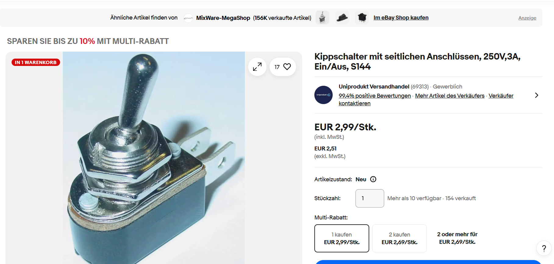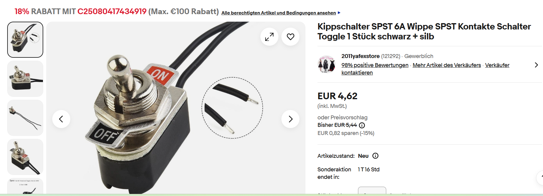 Nach bissel Suche hat sich der Schalter als defekt rausgestellt. Der Schalter ist ein Kippschalter .. flache Bauform um im Gehäuse zu verschwinden. Kann ja nicht so schwer sein .. nach laaaanger Suche find ich aber keinen.. :shock: