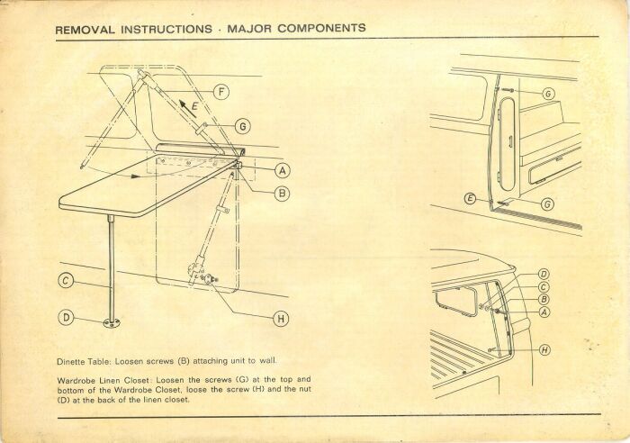 die verlinkte Anleitung ist vom Campmobile 67, da ist einiges noch anders. Es gibt z.B. keinen Dachschrank und der seitliche Schrank ist mit drei Schnellspannern befestigt.