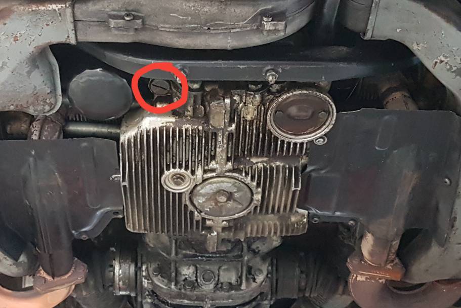 Meiner ist wie von VW beim VW Porsche 914 in dem anderen großen Blinddeckel auf der anderen Seite mit den zwei Schrauben -