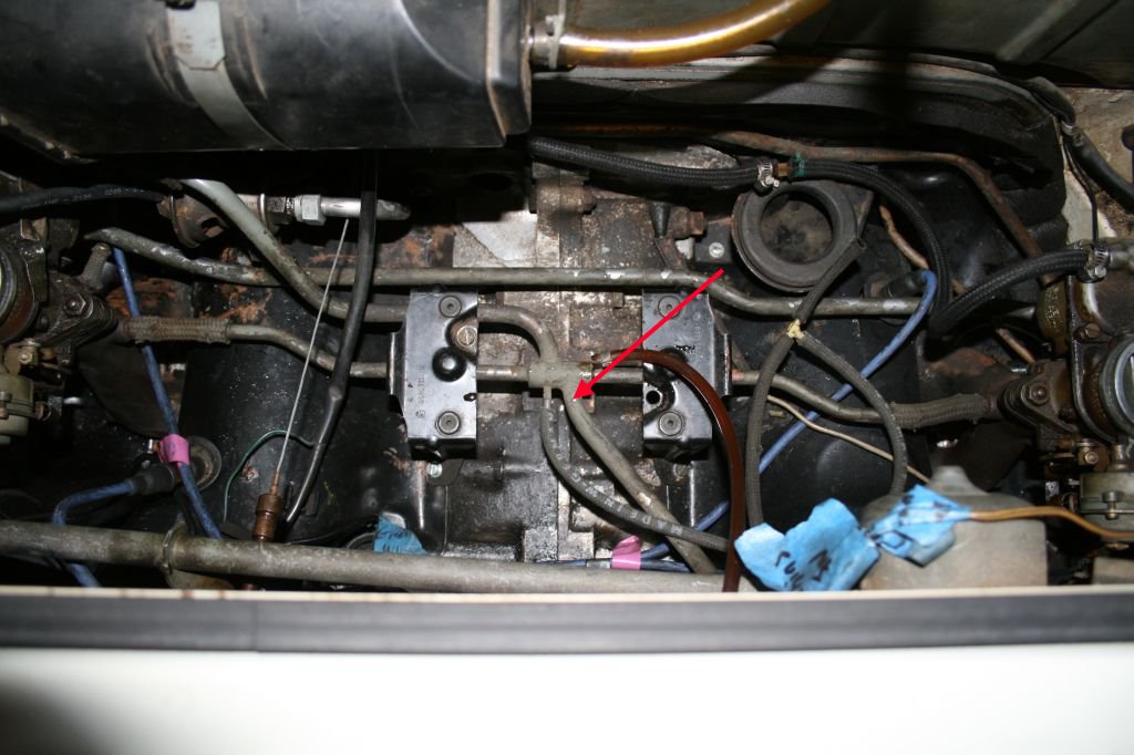 Und ja ....einmal werden die Vergaser mittig verbunden (bei meinem Bild gut zu sehen ) und einmal "hinten rum" an der Schottwand entlang und die Versager von außen anzapfend.....da hängt dann auch die Unterdruckleitung für den Bremskraftverstärker dran.