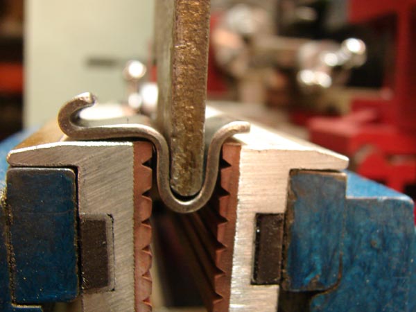 Zum Biegen braucht man einen guten Schraubstock und ein entsprechend abgerundetes Gegenstück von ca. 4 mm Dicke.