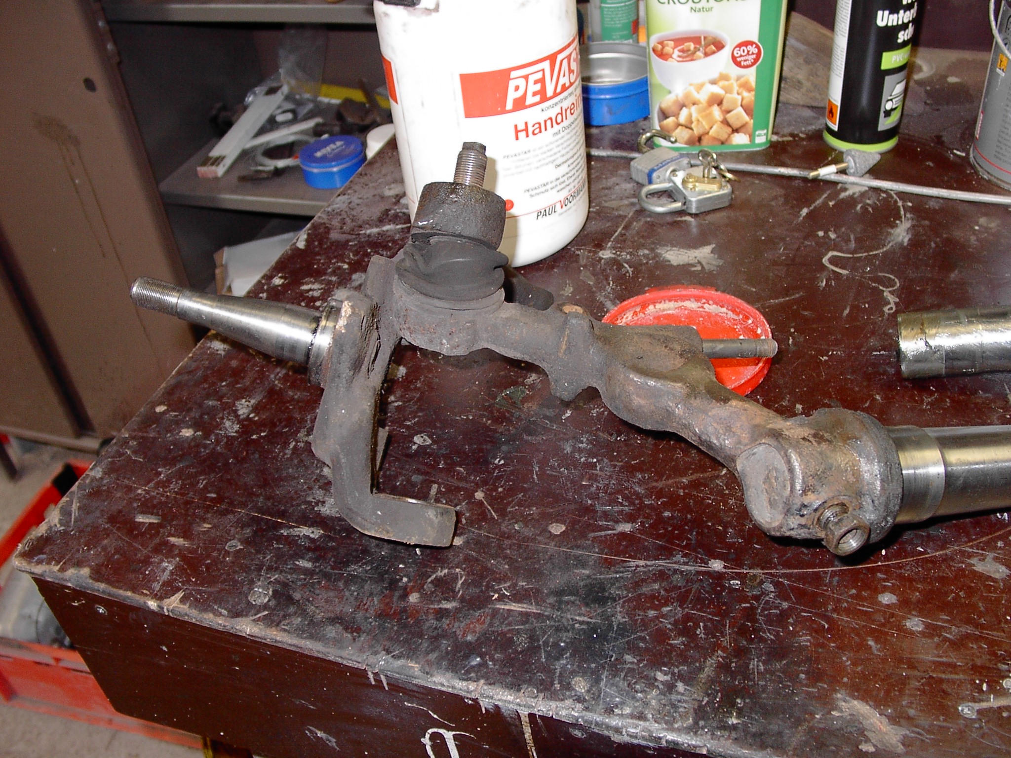 Und wie bekomme ich den unteren Traghebel der Vorderachse ab ? Der obere ging ganz leicht. Ach ja, die Achse ist ausgebaut.