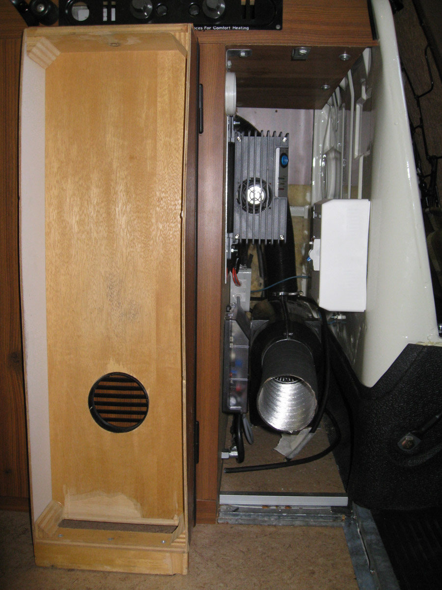 unter der dunkelgrünen Platte ist das "Loch" wo mal eine (wie ich jetzt weiß) Truma SBA 1800 eingebaut war.