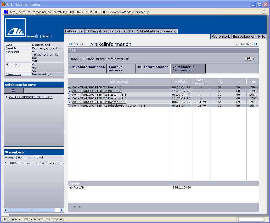 Bei VW habe ich auch nochmal nochmal nachgehackt. Lt. System ist der bei den nicht lieferbar. Hab denen dann die Art.Nr. von ATE durchgegeben und schwups die wupst könnten Sie mir auch liefern für 390€.