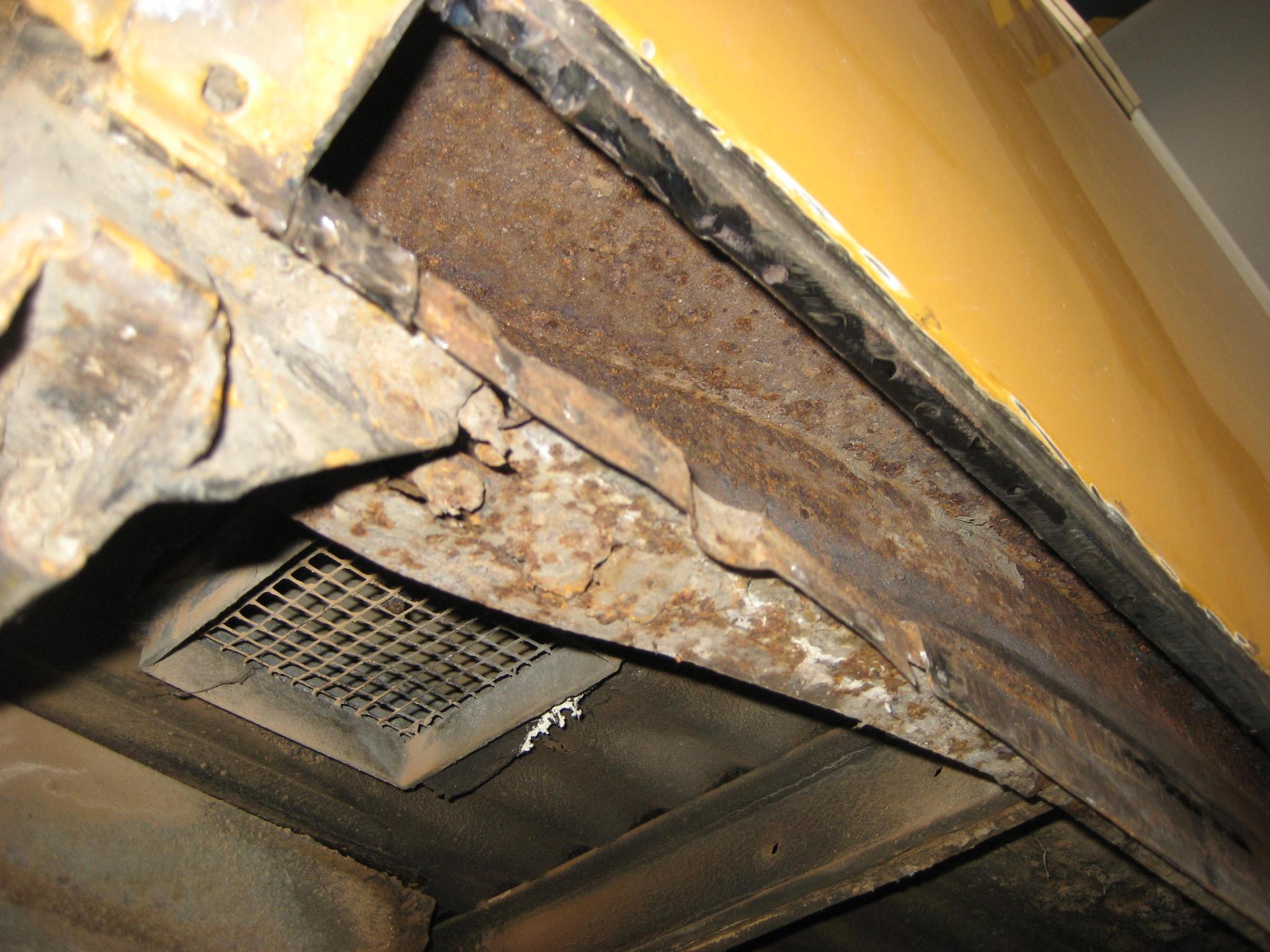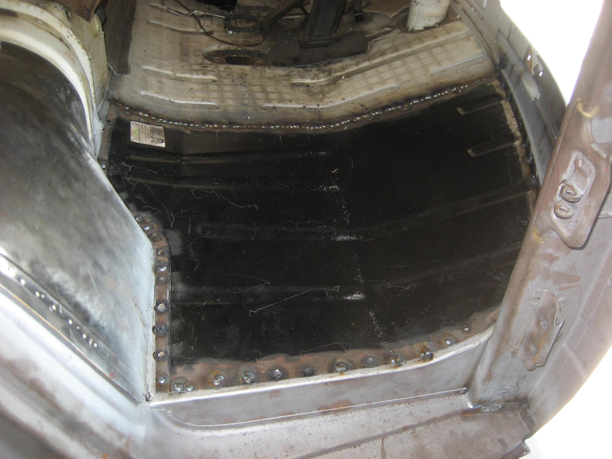 Der Unfall ist Geschichte, jetzt rücken wir grade der braunen Pest zu Leibe. Ist aber wirklich nur der linke Einstieg und der Batterieboden.