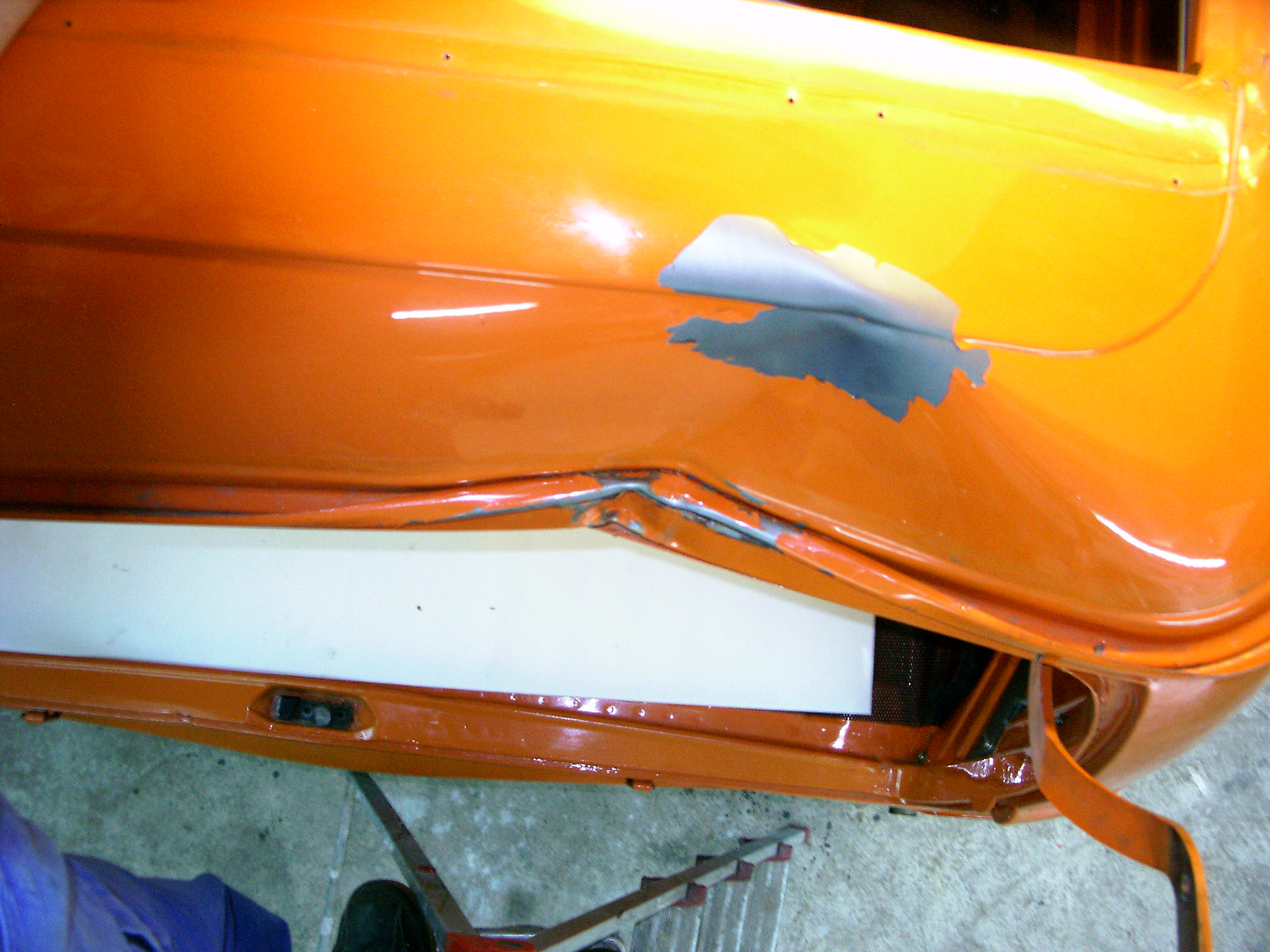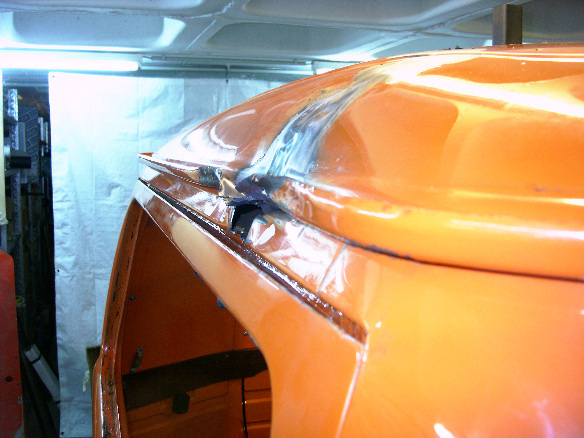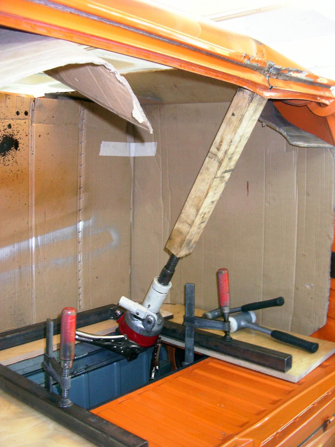 Mein Bruder und ich sind uns jetzt nicht ganz sicher, wie wir am besten weitermachen. Die Profile sind im Moment noch so gespannt, daß man eigentlich nicht weiter ziehen kann. Wir überlegen im Moment, ob man die Dachhaut in den Schweißpunkten abtrennt, rauszieht, und dann versucht, den Rest nachzuziehen und wieder zu verschweißen. Wir wollen soviele Teile wie möglich retten, zumal die Verformung sich nur auf einen kurzen Bereich beschränkt. Ist es sinnvoll, noch einen Trennschnitt zu setzen, um die Profile wieder in die korrekte Lage drücken zu können? Hat schon mal jemand etwas ähnliches gemacht?