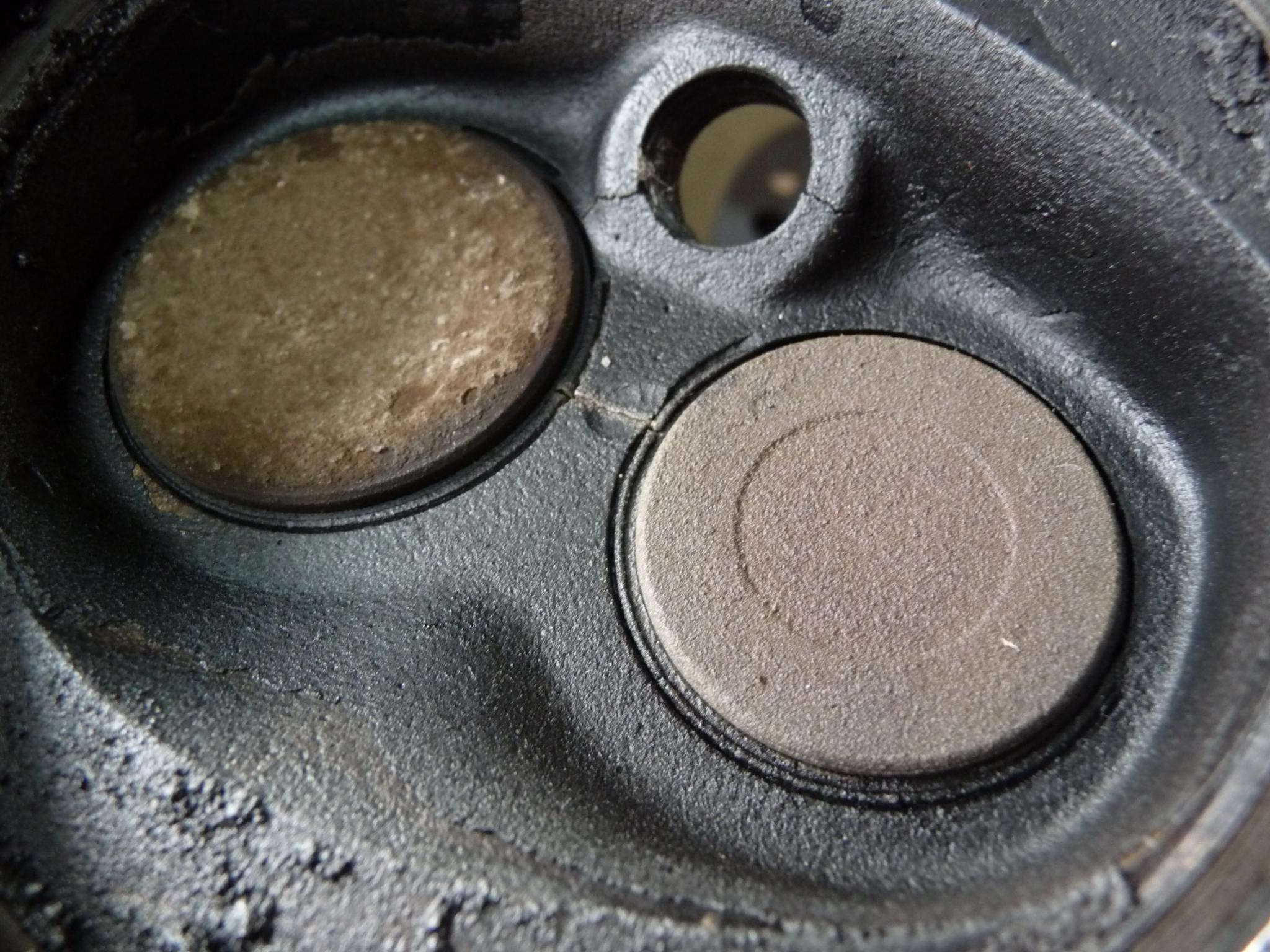 Was war es nun? Also. Die Lagerschalen der Kurbelwelle waren hin, wie bereits erwähnt, ein kleiner Kolbenfresser und dann unlustige Risse in beiden Zylinderköpfen. Wir vermuten die Ursache dafür im unsachgemäßen Zusammenbau des Motors von unseren Vorbesitzern, die es zwar gut, wohl aber mit dem Festziehen etwas zu gut gemeint haben...