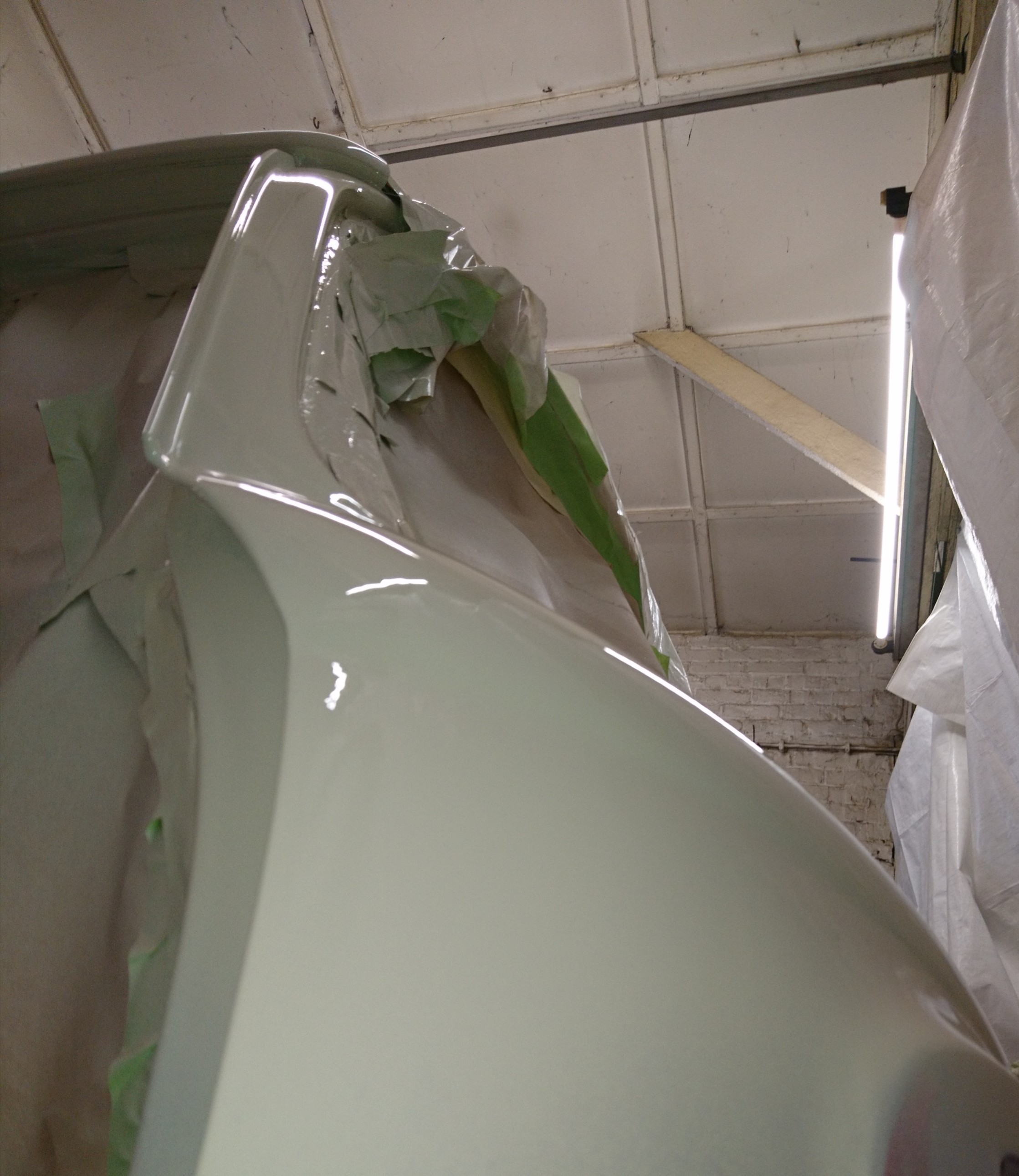 Ganz in ruhe mir alles angesehen!Mit ihm drüber geredet und so weiter!Hat mir noch mal die Farbkarten von verschiedenen Herstellern gezeigt, Farbton im bus past bei allen Karten.Entweder es ist das Licht in der Halle das es so Grünlich macht oder keine Ahnung!Sind jetzt so verblieben das er erst mal die Stoßstangen macht, und wir die dann mal im Tageslicht uns anschauen! Glasurit hat ja schon 5 oder 6 Farbnuancen. Und VW hatte damals auch schon 3 verschiedene!