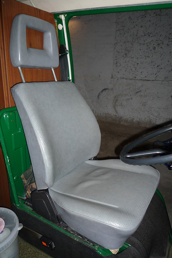 Ich fahre die originalen T2 Sitze mit neuen Polstern und den alten Kunstlederbezügen.