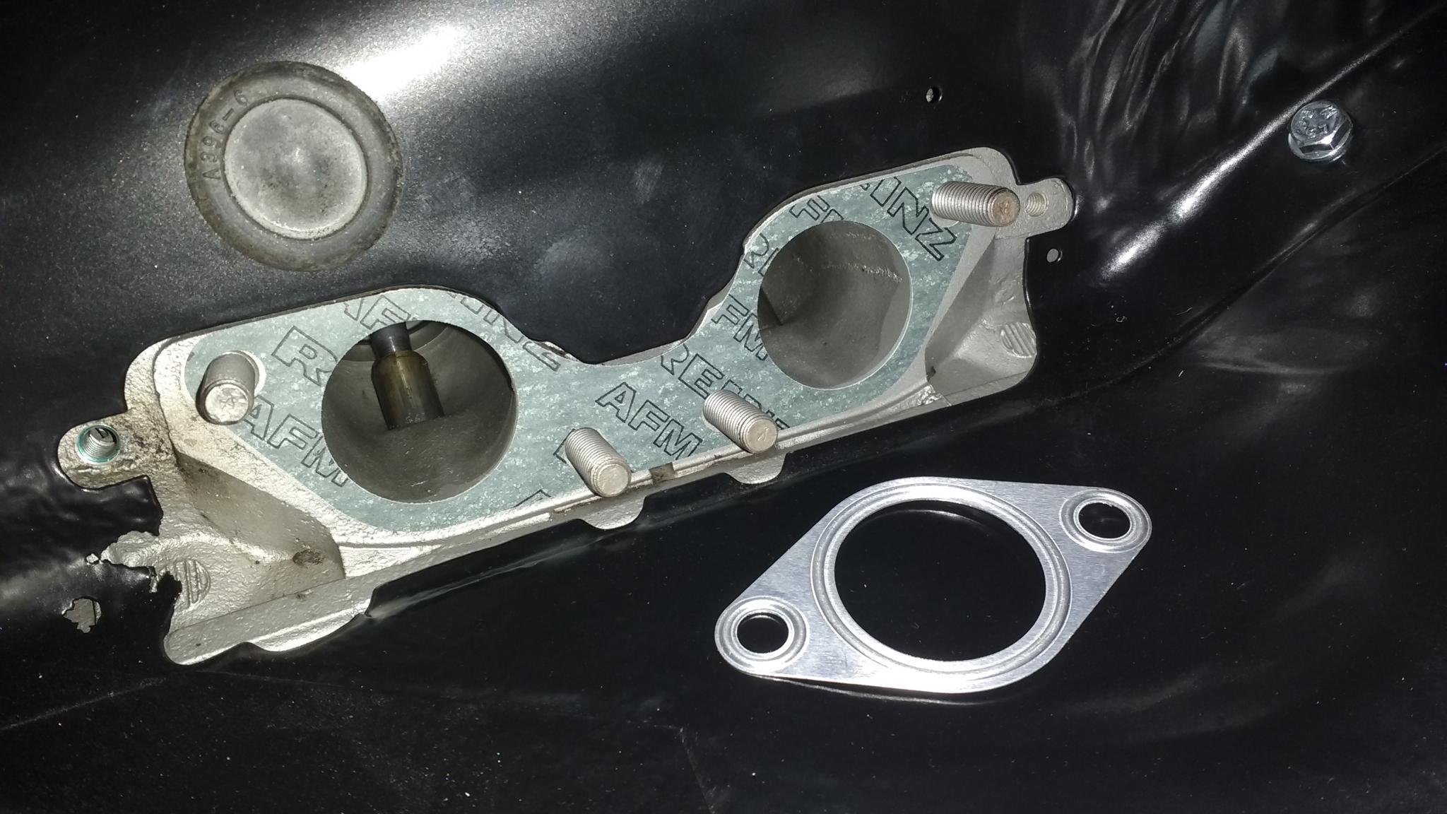 diese flansche sind mit einer pappe beklebt,das ist die dichtung !---das dickere material aus dem diese teile gemacht sind,sind ISOLIER flansche und sollen verhindern das die abwärme des zylinderkopfes sich direkt ins ansaugrohr überträgt und so das gemisch aufheizt denn dadurch wird die zylinderfüllung beeinträchtigt ( negativ) .....also kurz,das dicke mausgraue teil sorgt dafür das dein Benzin Luftgemisch kühler bleibt und so der motor besser läuft!
