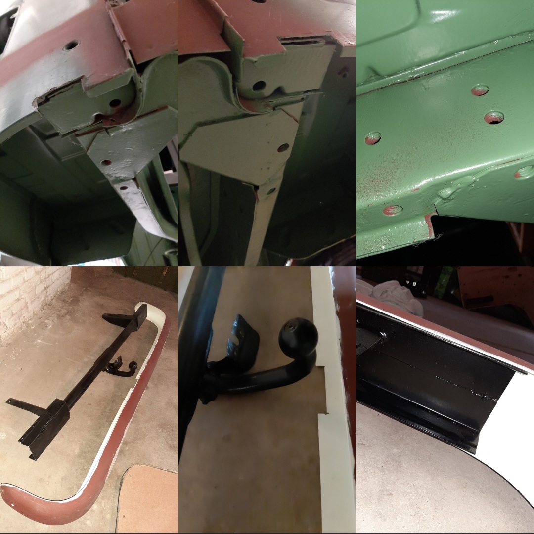 Der Ecken hinten wurden ausgeklinkt um Platz für die AHK zu schaffen. An der Stoßstange wurde ebenfalls ein Stück rausgetrennt um für den Kugelkopf Platz zu machen. Befestigt wurde die Stoßstange dann nicht an den originalen Bohrungen sondern wie beim T2b an den Schilden der AHK. Dazu wurden neue Löcher in die Stoßstange gebohrt. Alles nicht so schön. Ich werde mir wohl hintere Stoßstangenhalter besorgen und die AHK nicht verbauen.