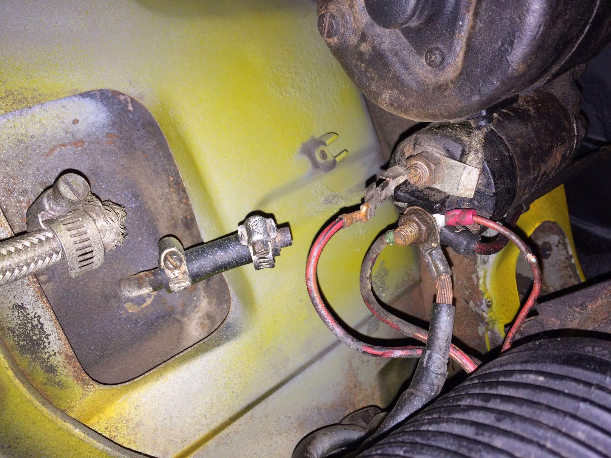 Das kann nicht der Grund sein, sondern böse enden! Das rot/schwarze Kabel ( links im Bild ) kommt vom Zündschloss und betätigt den Magnetschalter. Diesen Anschluss würde ich mal prüfen. Oxidation etc. Und mal messen.