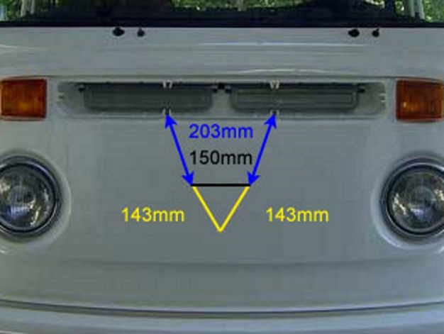 ... beim T2a mittels 4 x Tülle für VW-Zeichen 211 853 615