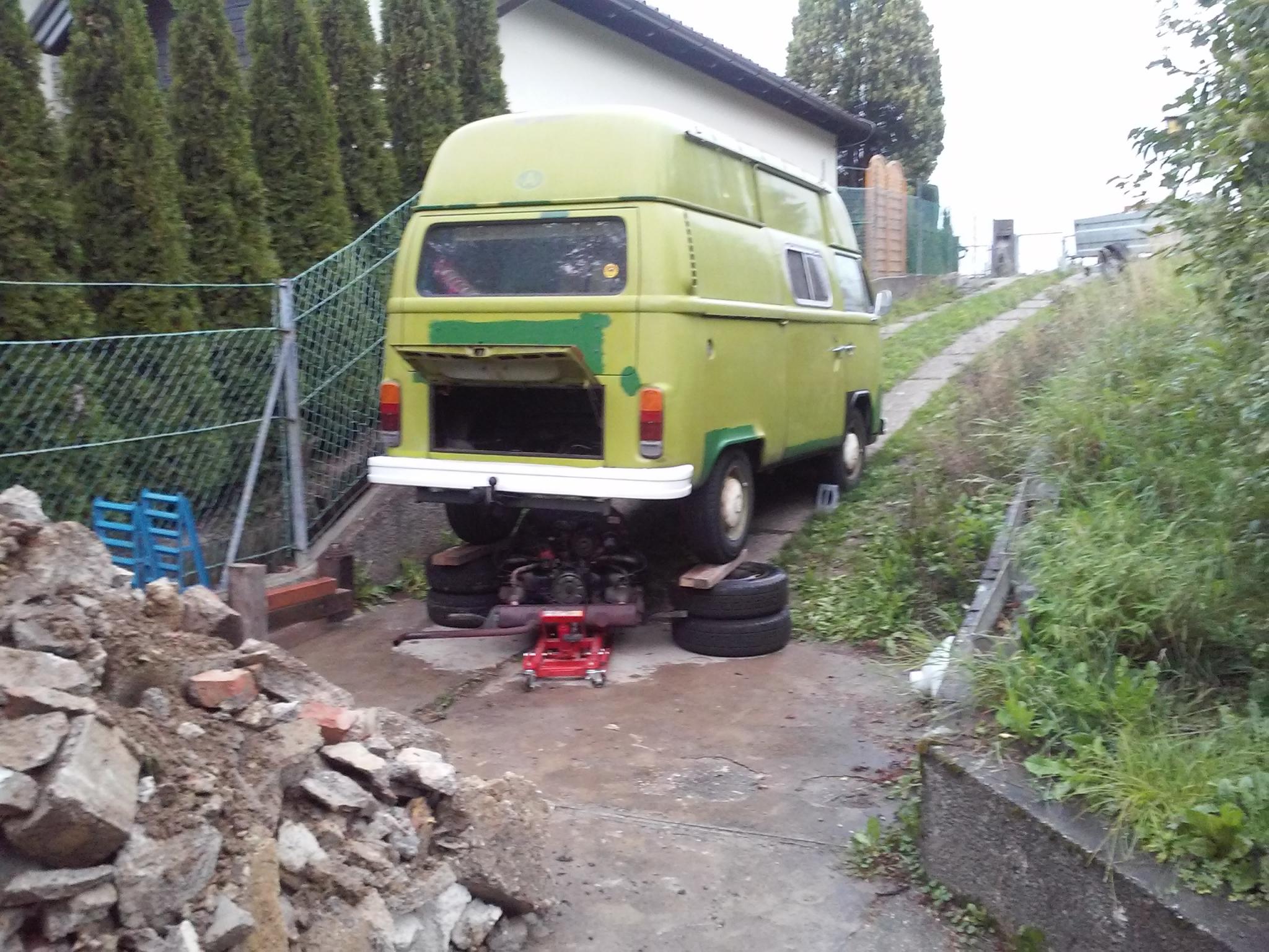 Beim Typ-1-Motor muss man einen T2b deutlich höher anheben, damit man den Motor unterm Bus rausbekommt. Ich hab ihn nur vom Getriebe gelöst und abgesenkt. Meine Vorgangsweise: