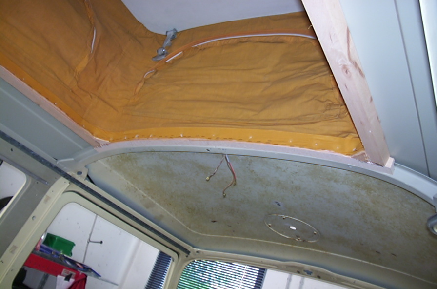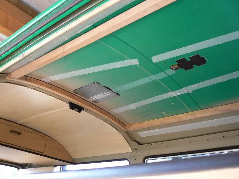 bei meinem Westy hat ein Vorbesitzer den Querspriegel entfernt um eine durchgehende Holzplatte einzusetzten und auf die Reste dann Gasdruckaufsteller geschraubt. Da ich weiß, dass der TÜV, wenn er dann doch mal genauer hinschaut sein Veto einlegt, hab ich mir von einem Schlachtbus einen besorgt und den eingesetzt. Dabei hab ich ein paar Bilder gemacht, wie es im Inneren aussieht. Bei der großen Öffnung ist das Dach im Inneren komplett neu gestaltet. Normalerweise ist da ja nur die Dachhaut von Außen, aber beim Westy ist der Rahmen innen auch noch verstärkt, das Dach also doppelt im Randbereich und zusätzlich eben noch der Querspriegel um die Steifheit zu erhalten.