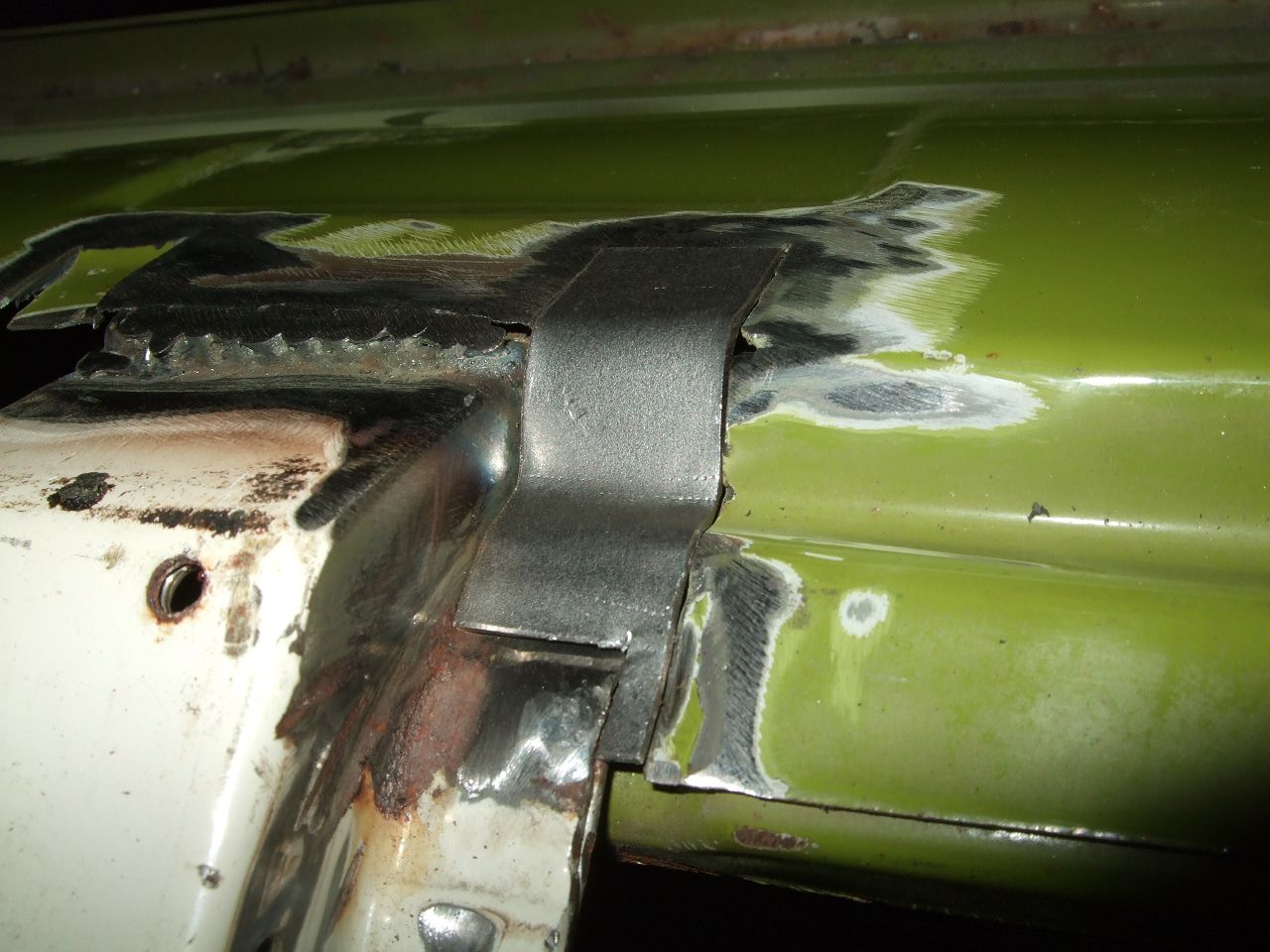 Hier hat sich also jemand ein Hubdach eingebaut und auch der Holzrahmen ist gut sichtbar, ferner aber auch der Spriegel (mit Knotenblech) über den B-Säulen, wo es wohl letztlich auch darauf ankommt.