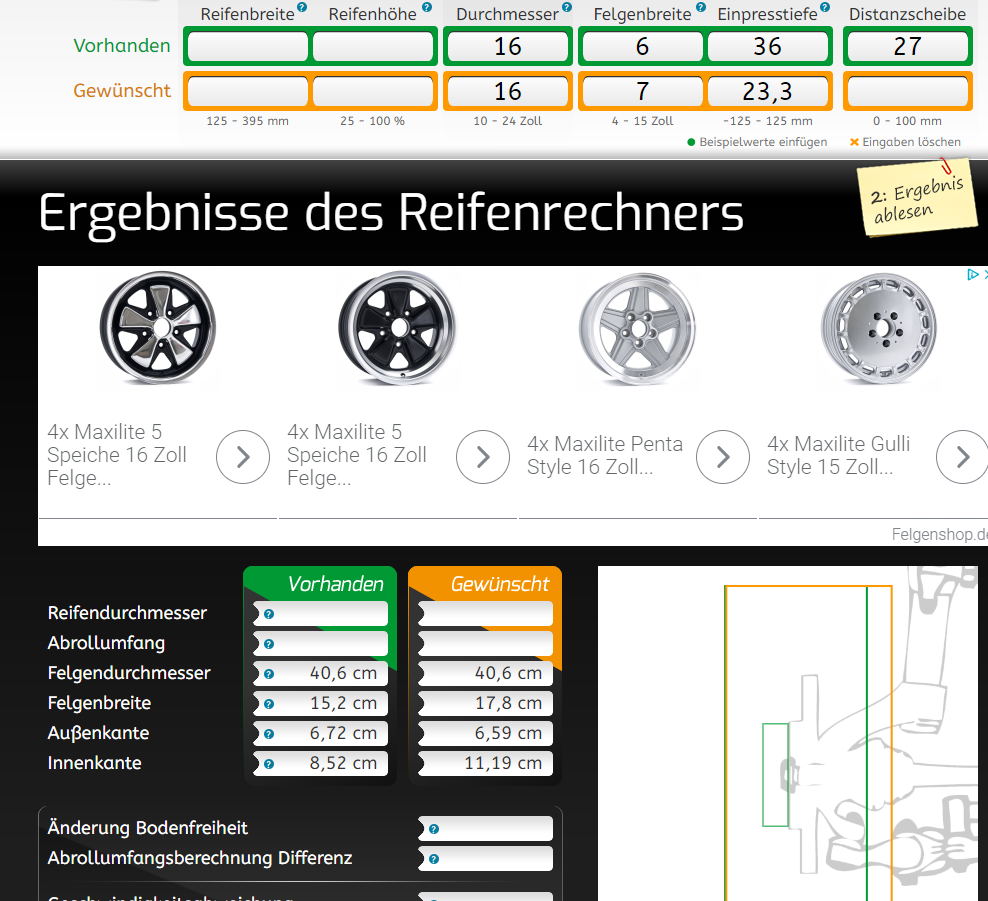 Ich habe mir (danke Steve) das mal auf Felgenrechner.at angeschaut, das würde wie folgt aussehen. An sich ja eine gerade Linie.