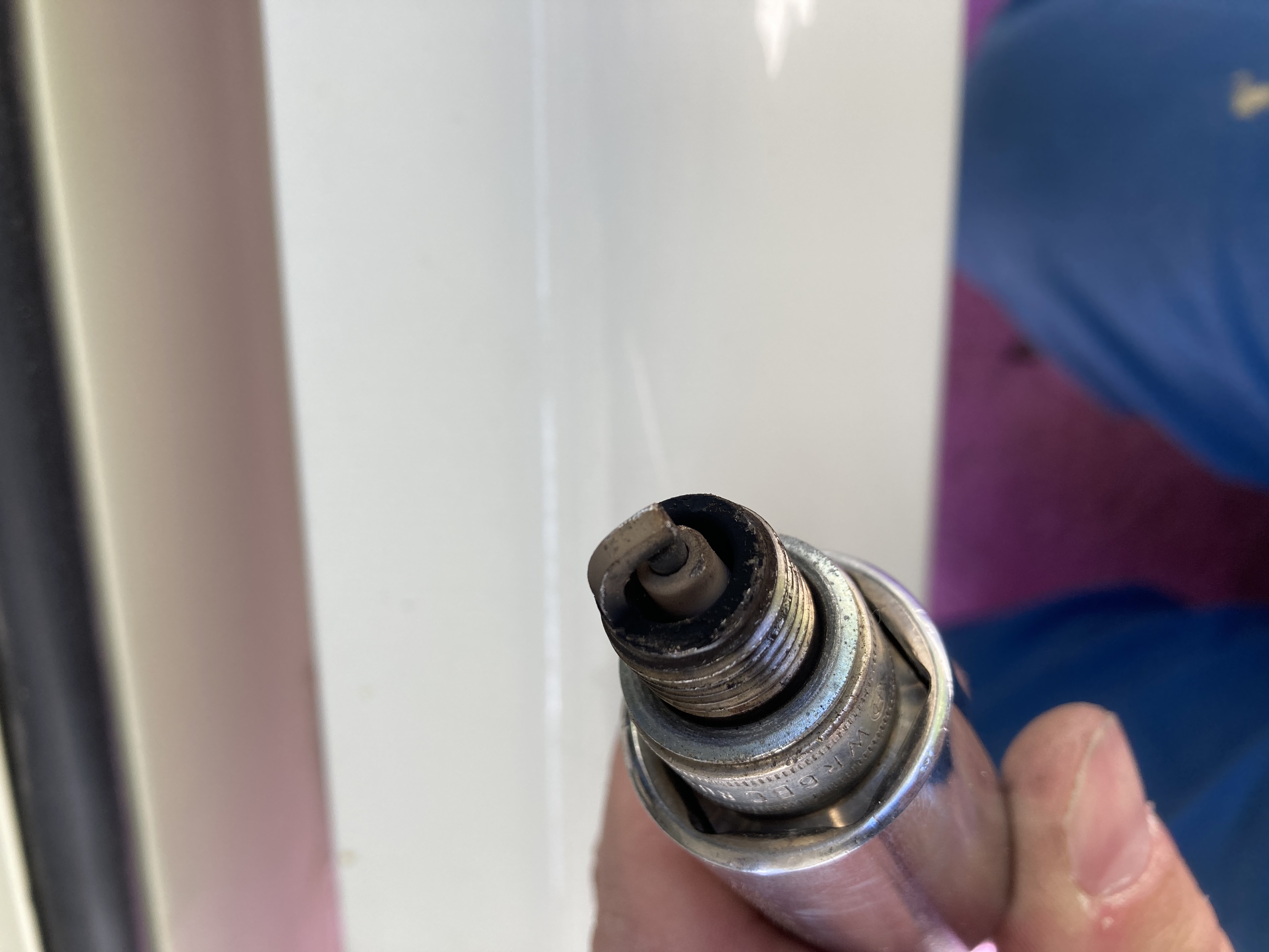 Dabei habe ich jetzt auch mal die Zündkerzen ausgebaut. Der Motor wurde vor 4000km komplett gemacht. Jetzt mach mich auch die Farbe vom 3 Zylinder unruhig, meiner Meinung zu mager. Von der Fahleistung hatten wir keine Probleme auch ruckelt nichts, die Öl Temperatur ist immer um die 90-100 grad je nach belastung.