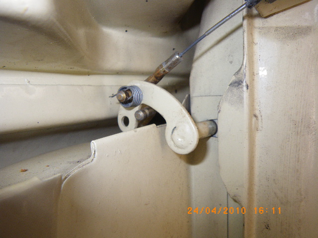 Der blaue Hebel öffnet die Lüftungsklappen hinter dem Gitter an der Front. Das erfolgt aber eben nicht über Seilzug sondern über ein Gestänge - bei Michael nicht mit abgebildet.