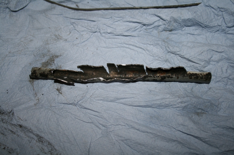 Also mit Dremel aufgeschnitten, erst Seele und dann die Stahlummantelung herausgezogen (bzw. gaaanz sachte mit Zange & Hammer rausgekloppt). Die aufgeschnittene Stelle wurde immer länger, da der Zug immer wieder in kleinen Stücken abriß, egal wie vorsichtig man zu Werke ging.