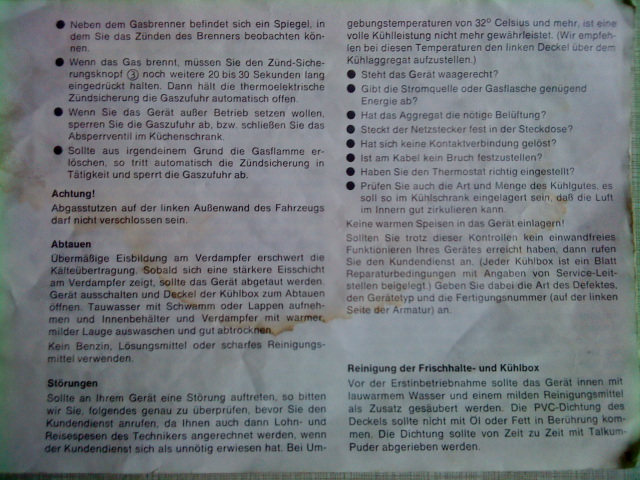 Wenn Du Dich mal in Deinem Kühlschrank umsiehst wirst Du so ein kleines rundes Fenster unten rechts an der Rückwand sehen. Brennt Deine Flamme (hinter dem Kühlschrank) dann sollst Du sie blau schimmernd durch das Löchlein sehen.Harald hat geschrieben:freue Dich über Deinen Berlin, die Helsinki-Fahrer müssen für den Gasstart Knieschoner anlegen