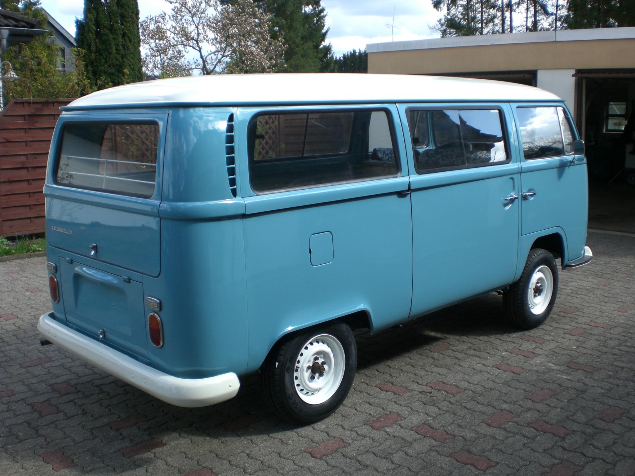 nur hat er die falsche Kombi gewählt, beim 71er T2 in Niagarablau war das Pastellweiss immer runter bis zur Gürtellinie lackiert und nicht nur das Dach