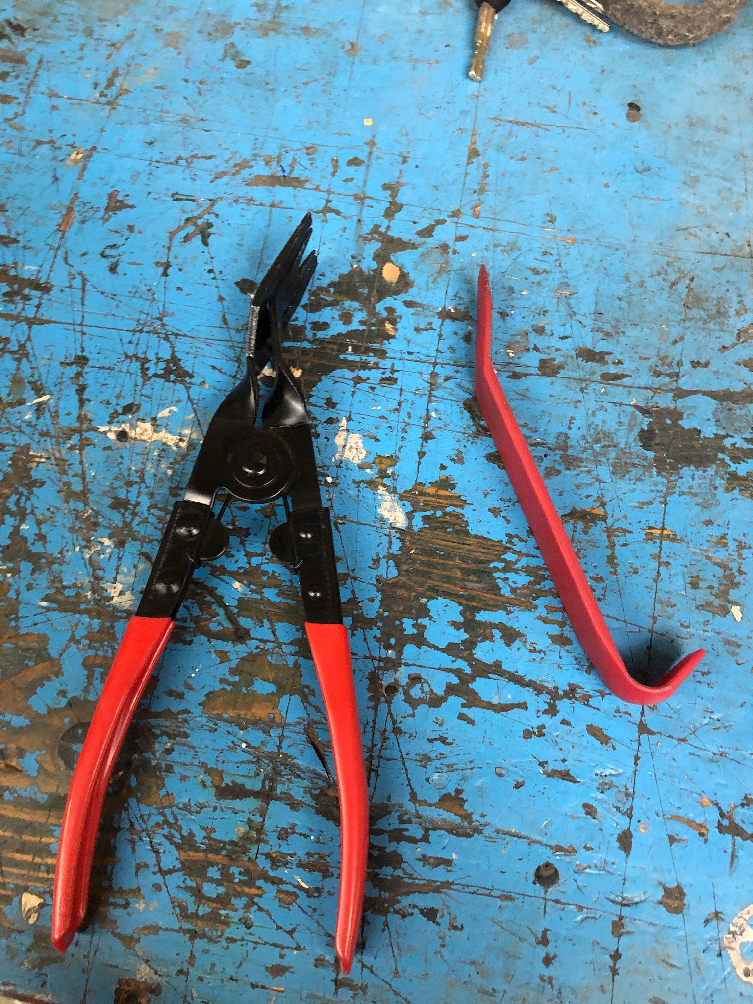 Mit der Zange konnte ich die Clips der Zierleiste schön von unten in die Löcher drücken und mit dem roten Hebel haben ich vorher die Clips ordentlich platziert.