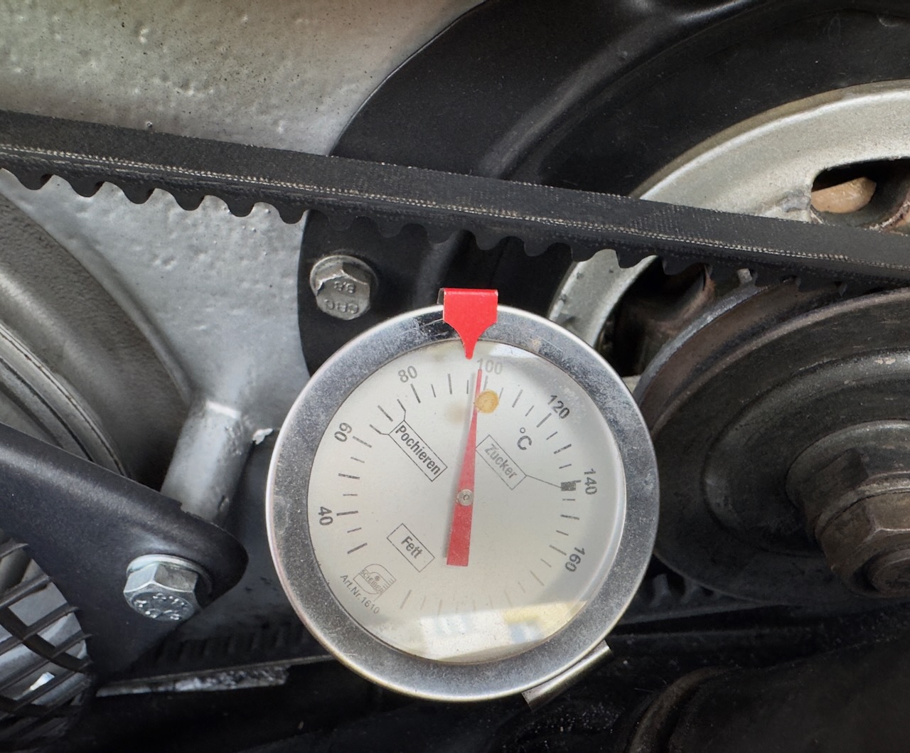 Die Messung direkt nach dem Ankommen (mit laufendem Motor) mit dem Bratthermometer (kann ich total empfehlen für die Sumpftemp.) ist dann 98 Grad