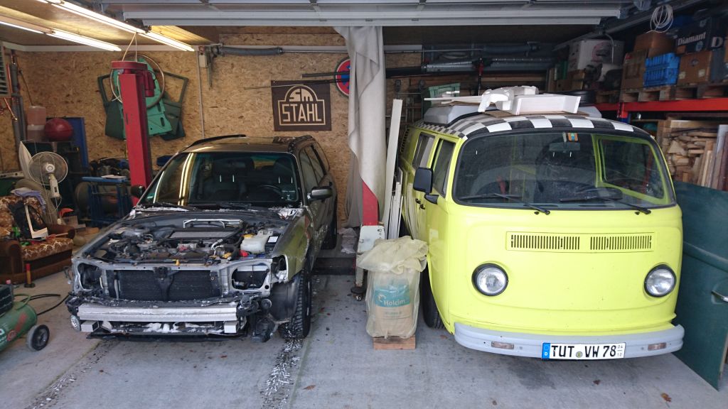 Und jetzt gehts los mit Subarugears, Krümmer schweißen, Kühler besorgen, Motorhalter, Ladeluftkühlung, Tank, und noch 1000 anderen Sachen.