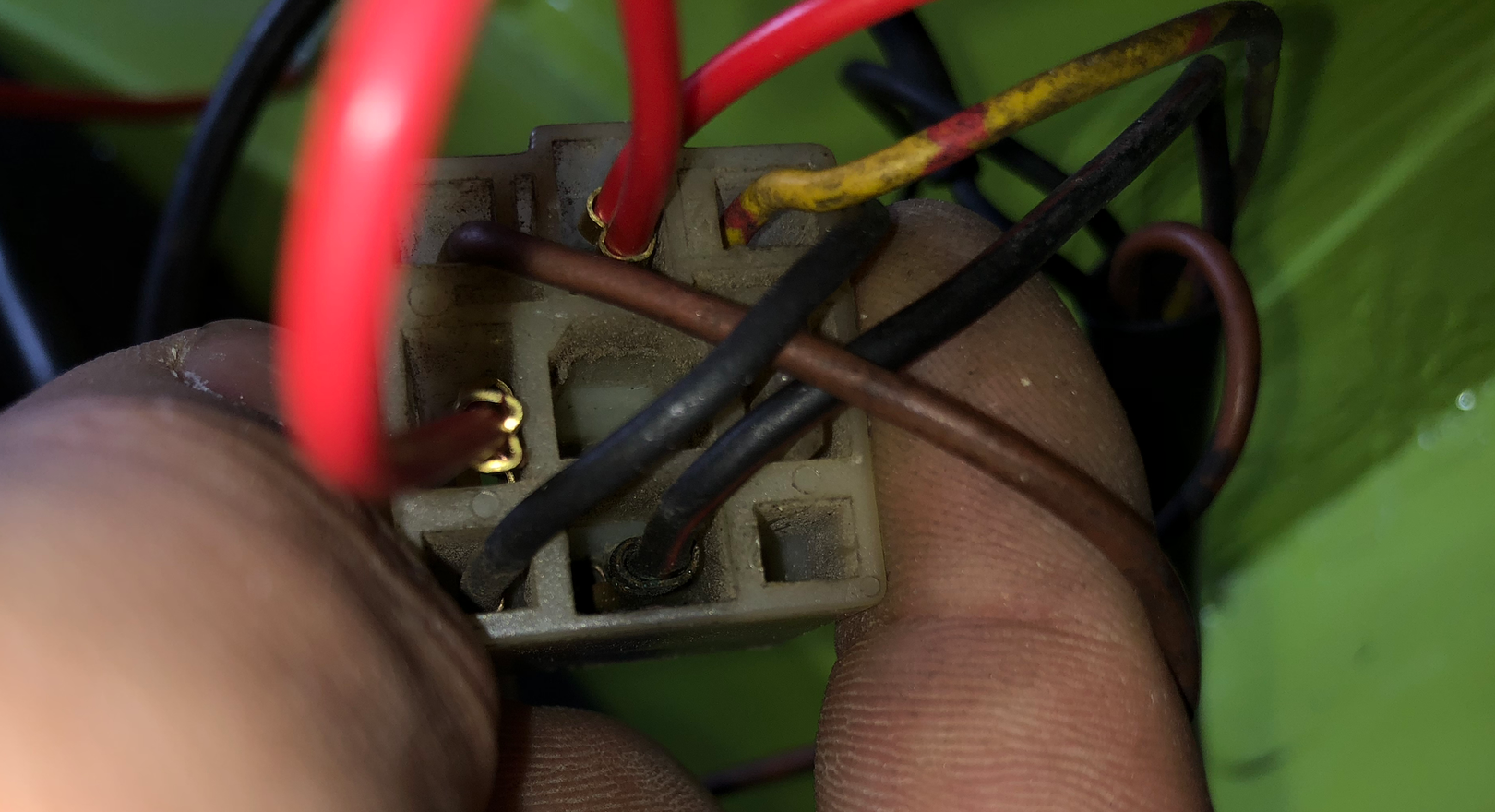 Da aber Ralf, wie gesagt, an seinem den Getriebeschalter dabei hat, musste ich nun beide kombinieren. Ich wollte bloß sichergehen, ob das denn richtig gemacht wurde. Im Workshop habe ich die Belegungen alle nachgelesen und so (hoffe ich) umgesetzt. Leider war bei dem originalkabelbaum komplett die rote Leitung der Batterie nicht vorhanden.
