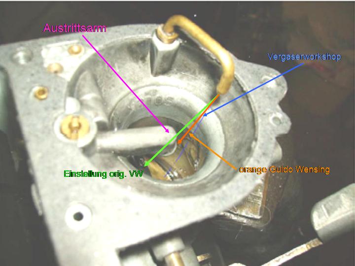 Also, von VW aus ist die Einstellung so, dass man direkt auf die Drosselklappenwelle spritzt. Wenn Guido Wensing Vergaser überholt, lässt er den Strahl direkt auf den Kragen des Austrittsarmes treffen. Beim Vergaserworkshop ( http://www.wonnegautriker.de/PDF/Vergaser.pdf , Edit 10.10.2021, Mod. NorbertManuel1889 hat geschrieben:Meinst du dass der Strahl des Einspritzrohres auf den Kragen des Rohres darunter (weiß nicht wie das heißt) spritzen sollte? Wir haben es so eingestellt das es daran vorbei spritzt....