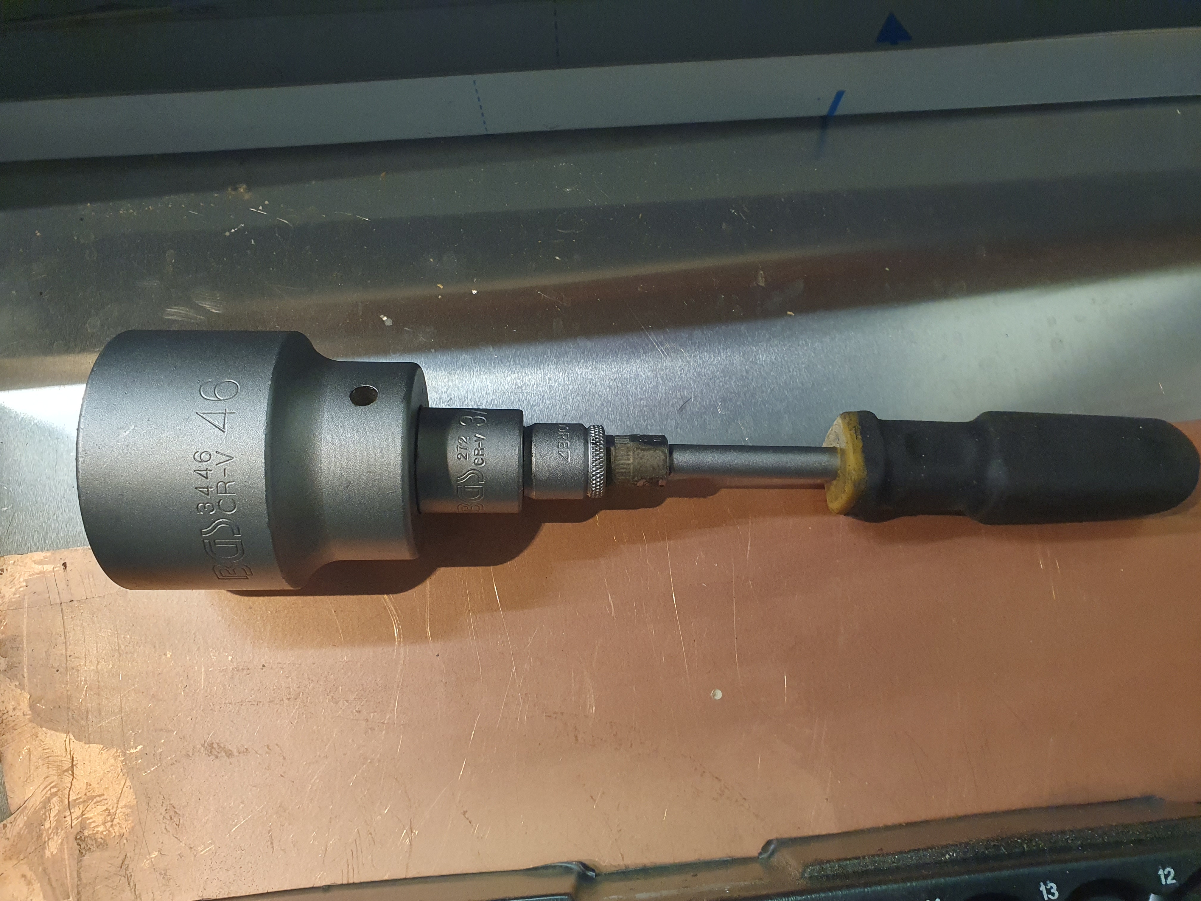 Und 1/2" Drehmomentschlüssel haben in der Regel keinen 10Nm Bereich. Da brauchst du ann in der Regel einen Drehmomentschlüssel mit 1/4" Antrib mit Adapter auf 1/2" damitt du die passende Nuss für den Öldruckschalter drauf bekommst.