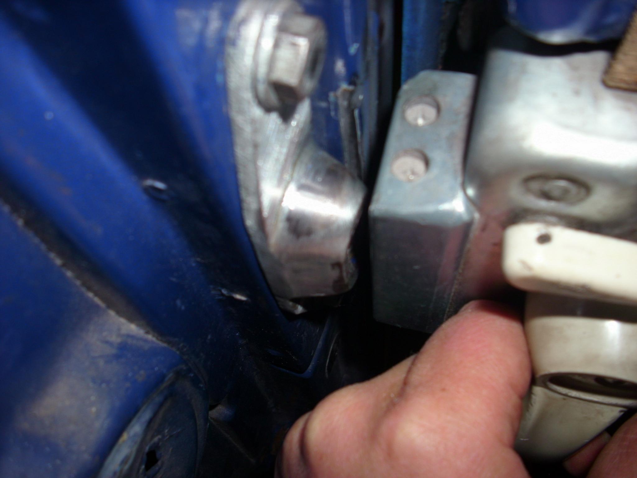 Wir müssen sehen, wo die Schließplatte in der Situation relativ zu den Schraublöchern in der B-Säule liegt.