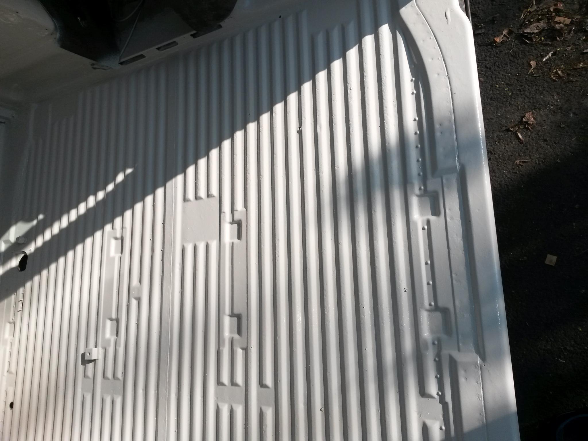 Den Laderaumboden am besten Sandstrahlen und dann neu Grundieren und Lackieren , es gibt auch so Kleine Sandstrahlpistolen für den Heimwerker sind zwar Schrott aber für kleine Stellen gut zu gebrauchen .