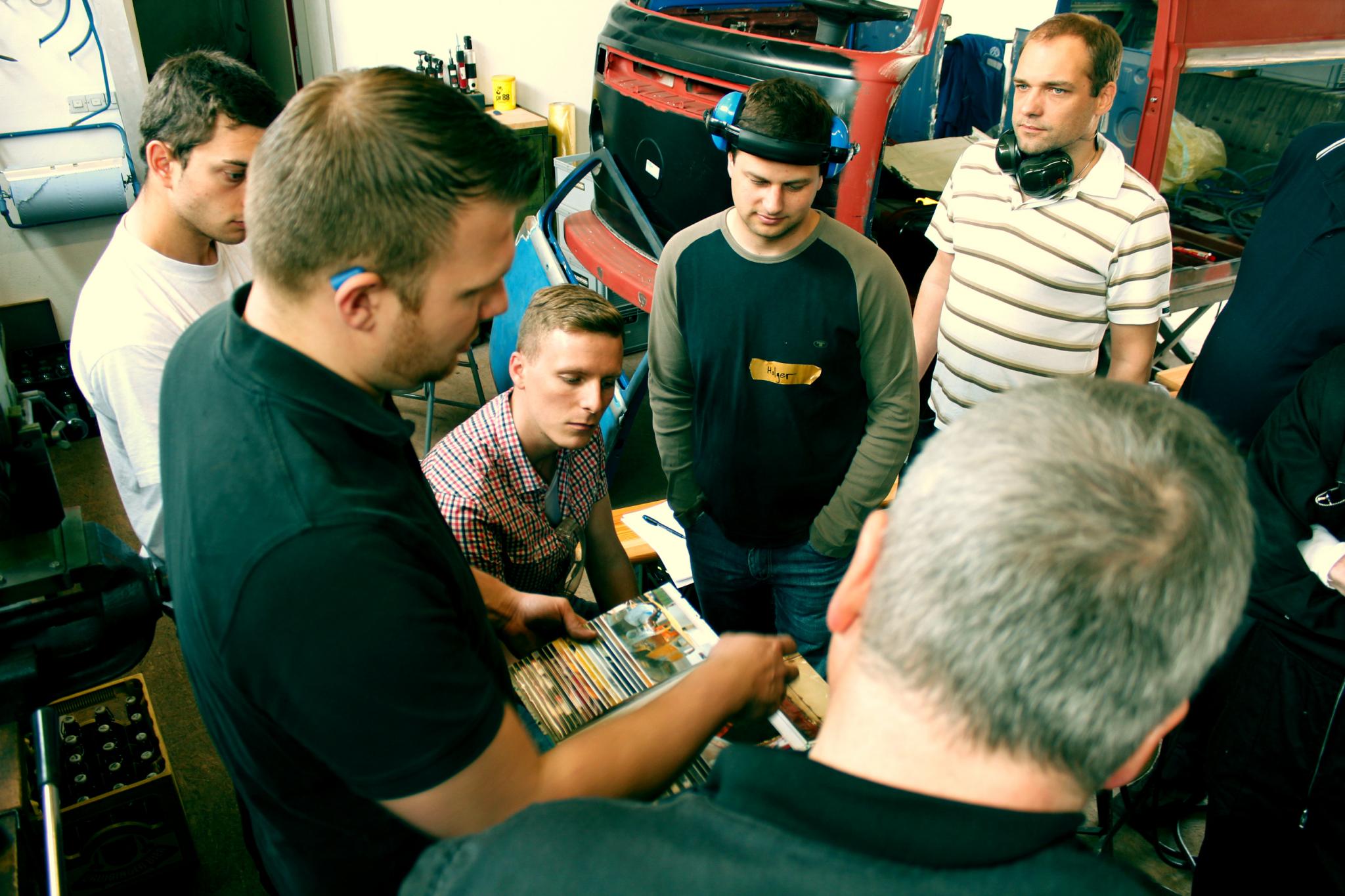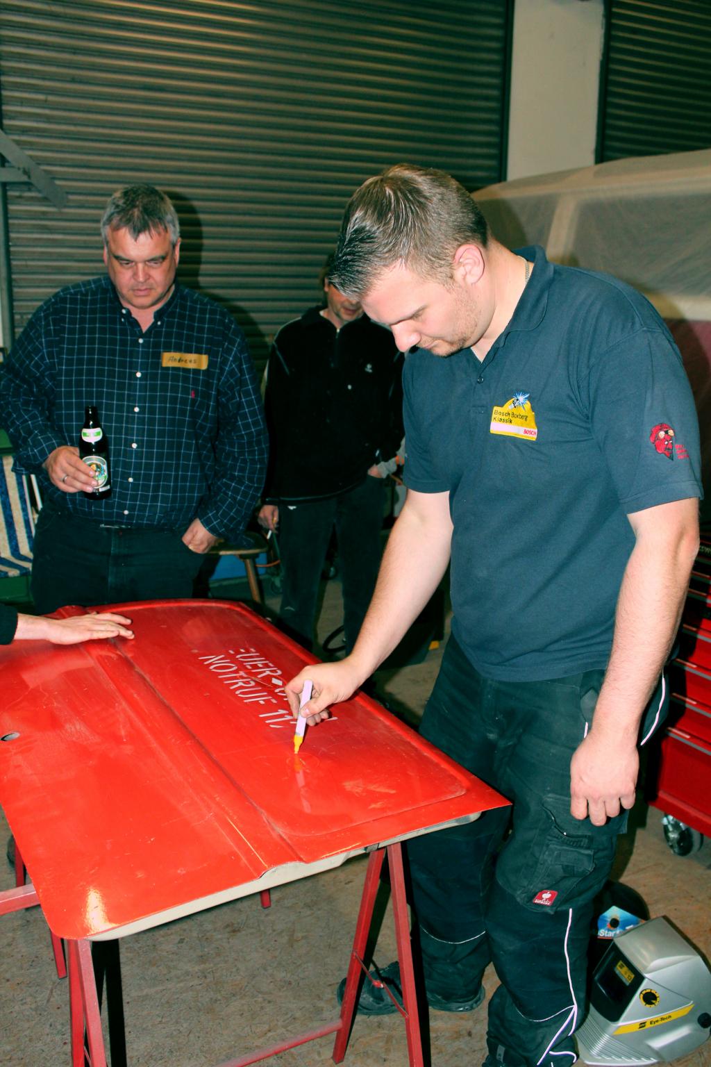 ich denke unser Werkstattwochenende 2014 letzte Woche in Schlaitdorf war eine gute Sache. Interessante, angenehme Leute, interessantes Thema, inspirierende T2-Location und ein perfekt im Thema steckender Referent/Trainer. Wer gut aufgepasst hat konnte viel auch nebenbei an Info zum Thema Resto und Werkzeuge mitnehmen. Interessant anzusehen war die Kennzeichen-Vielfalt auf dem Werkstatt-Parkplatz: Luxemburg, Wolfsburg, Kassel, München, ?Schweiz... und natürlich Region Stuttgart und Bodensee-Oberschwaben-Allgäu. :thumb: