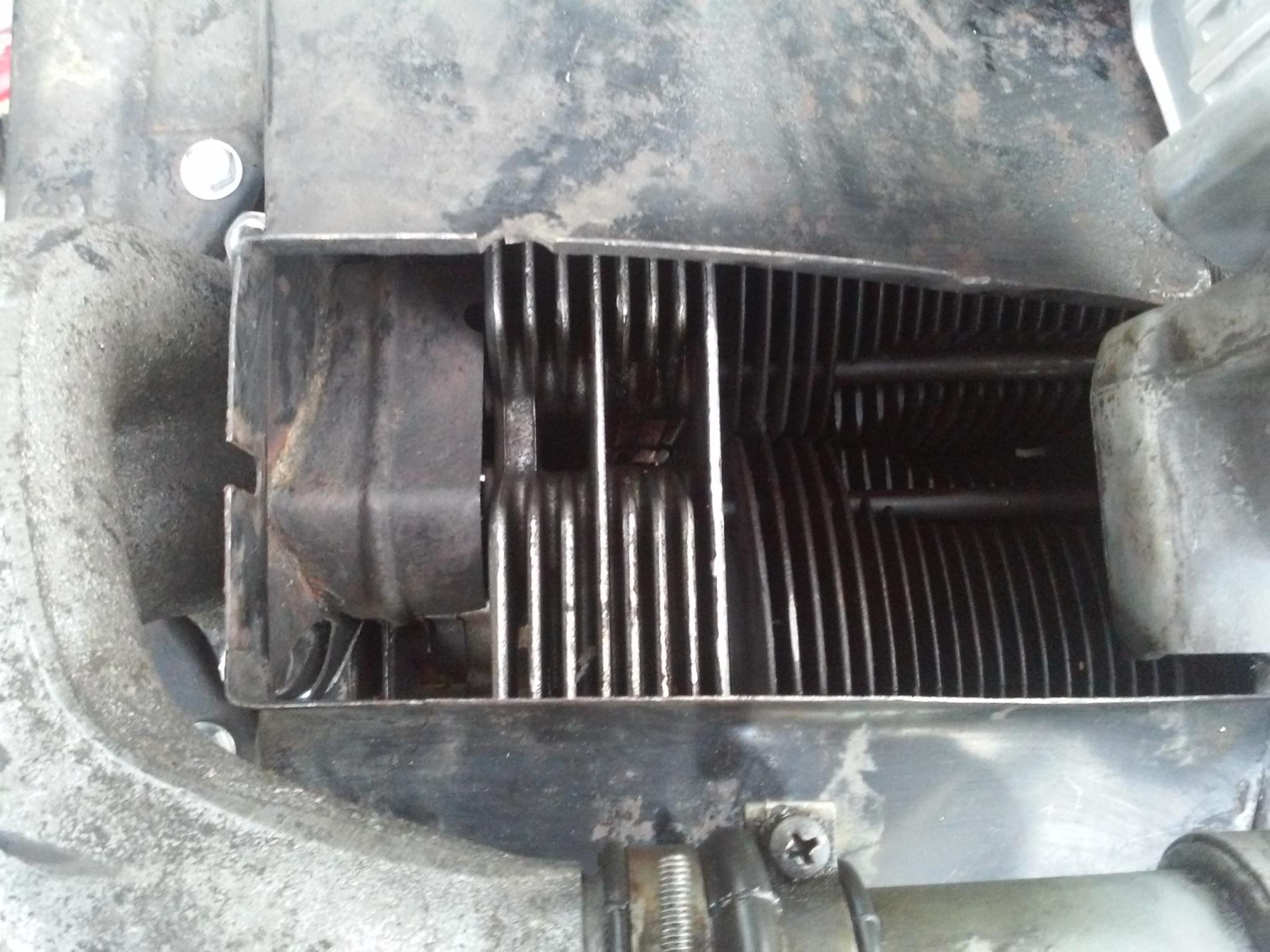 Es gibt auch Leute, die die Motorraumdichtung weglassen oder Teile der Verblechung. Beim gebläse-luftgekühlten Motor kommt es weniger darauf an, dass möglichst viel Luft an den Motor rankommt, als vielmehr, dass die verfügbare Luftmenge möglichst effektiv verteilt wird. Schliesslich kostet Gebläsekühlung auch Motorleistung.