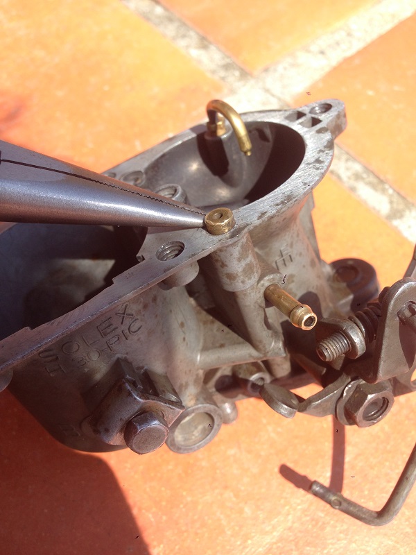 Ich habe auch noch einmal alles auseinandergenommen und versucht zu reinigen. Das einzige was evtl verstopft sein könnte ist folgender Kanal, auf den die Zange zeigt (siehe Bild). Wofür ist das? Es scheint in der Schwimmerkammer zu enden. Jemand eine Idee?