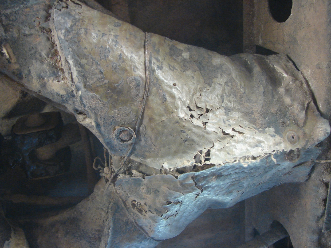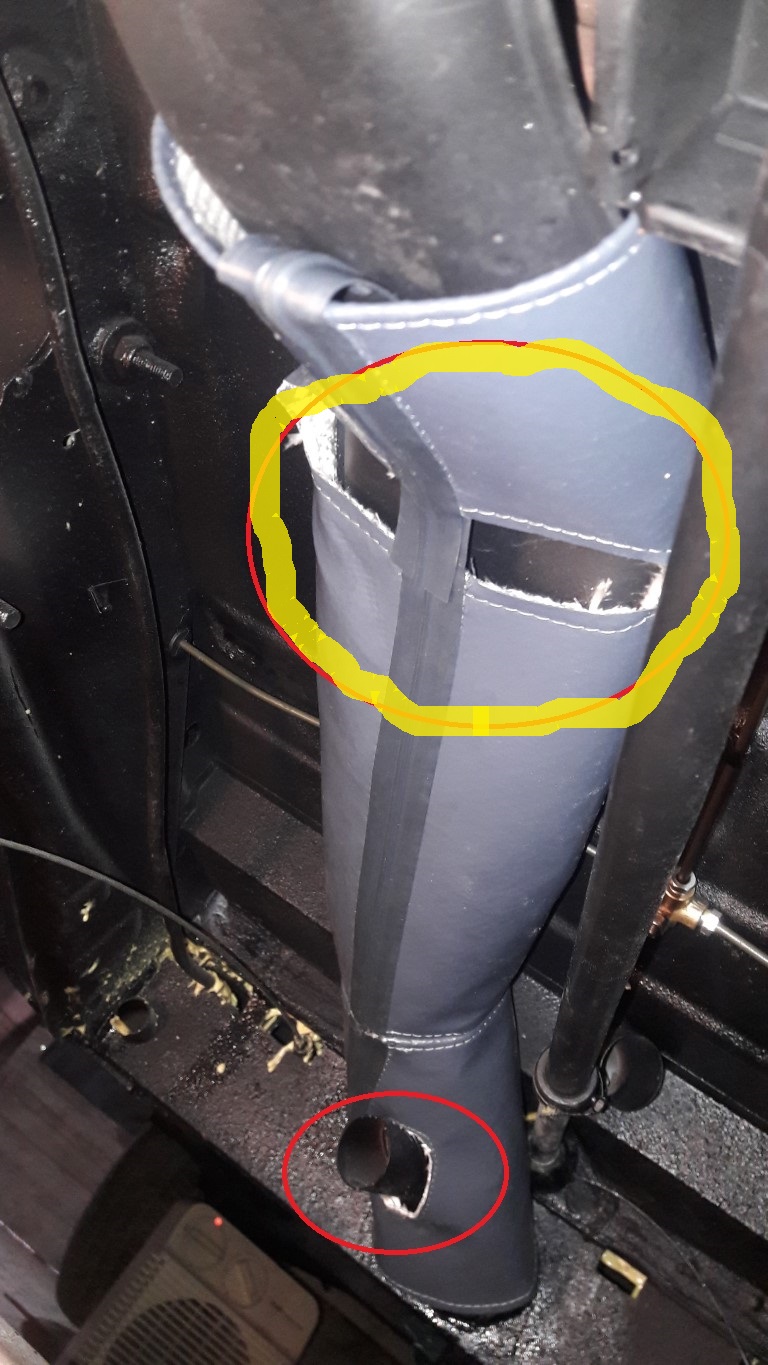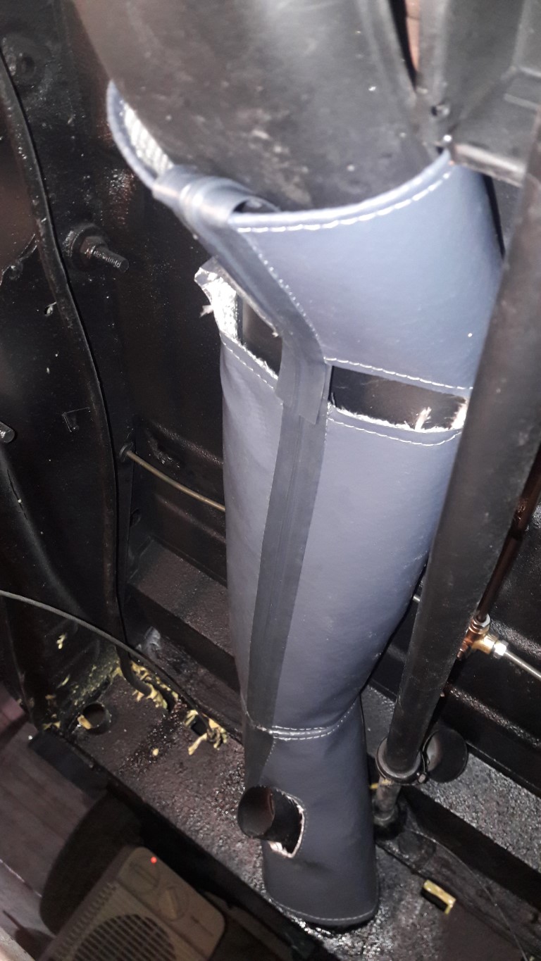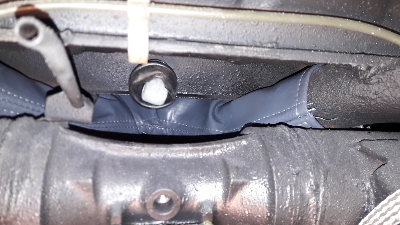 na klar. Bin unter meinen Bus zwecks Foto noch mal druntergekrochen. Bei mir ist die Stelle noch Original, wenngleich von der Isolierung nicht mehr viel da ist (brauche ich ja auch nicht wirklich). Die Matte ist Original, der Bindedraht von mir, weil der zweite Druckknopf weggeflogen ist. Das Ding sieht fast aus wie eine Druckknopfwindel und geht auch nur über die eine Stelle. Der Rest des Y-Stücks ist unisoliert.