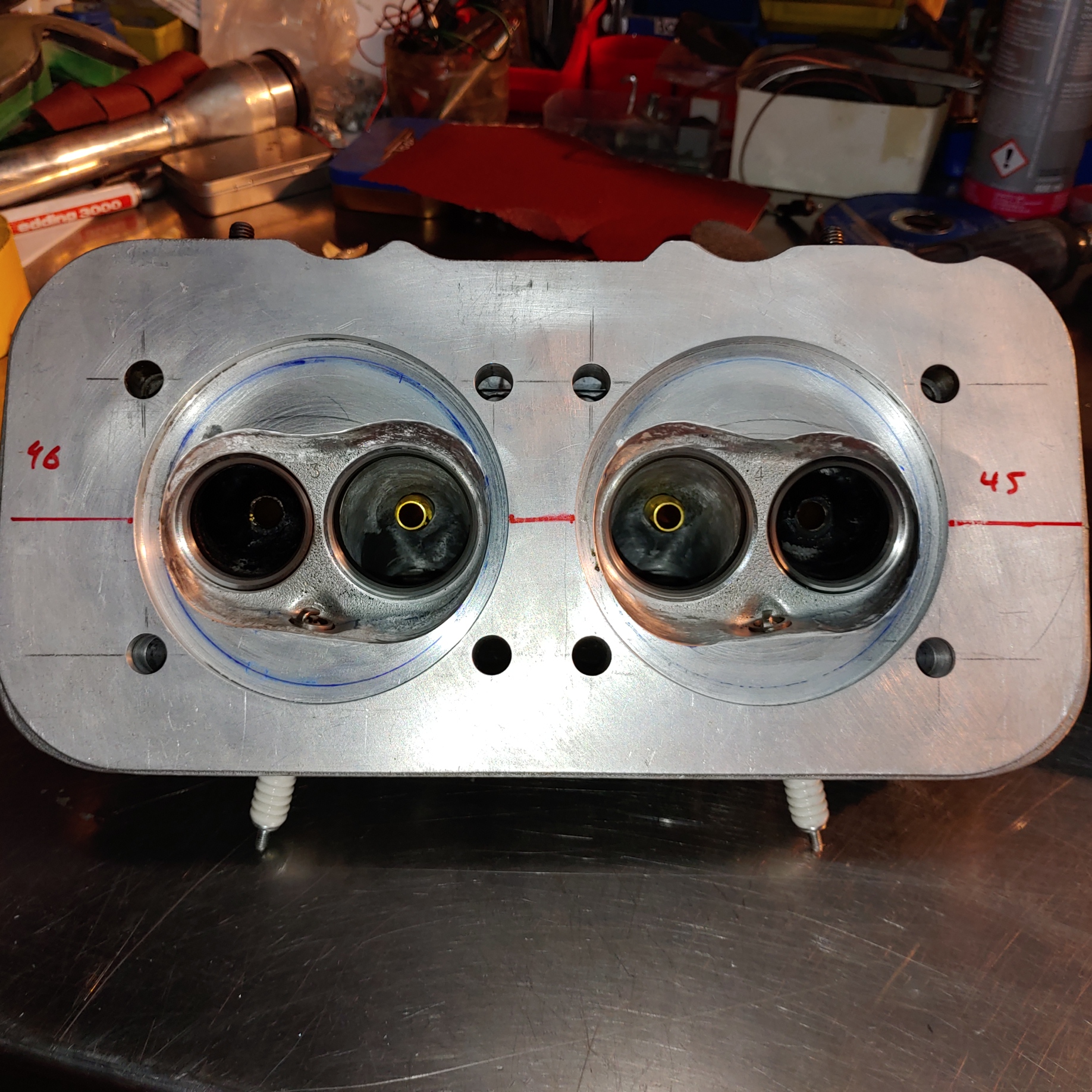 In deinen Köpfen hast du recht große Ventile, dadurch ist die Rissgefahr zwischen den Ventilsitzen deutlich erhöht.