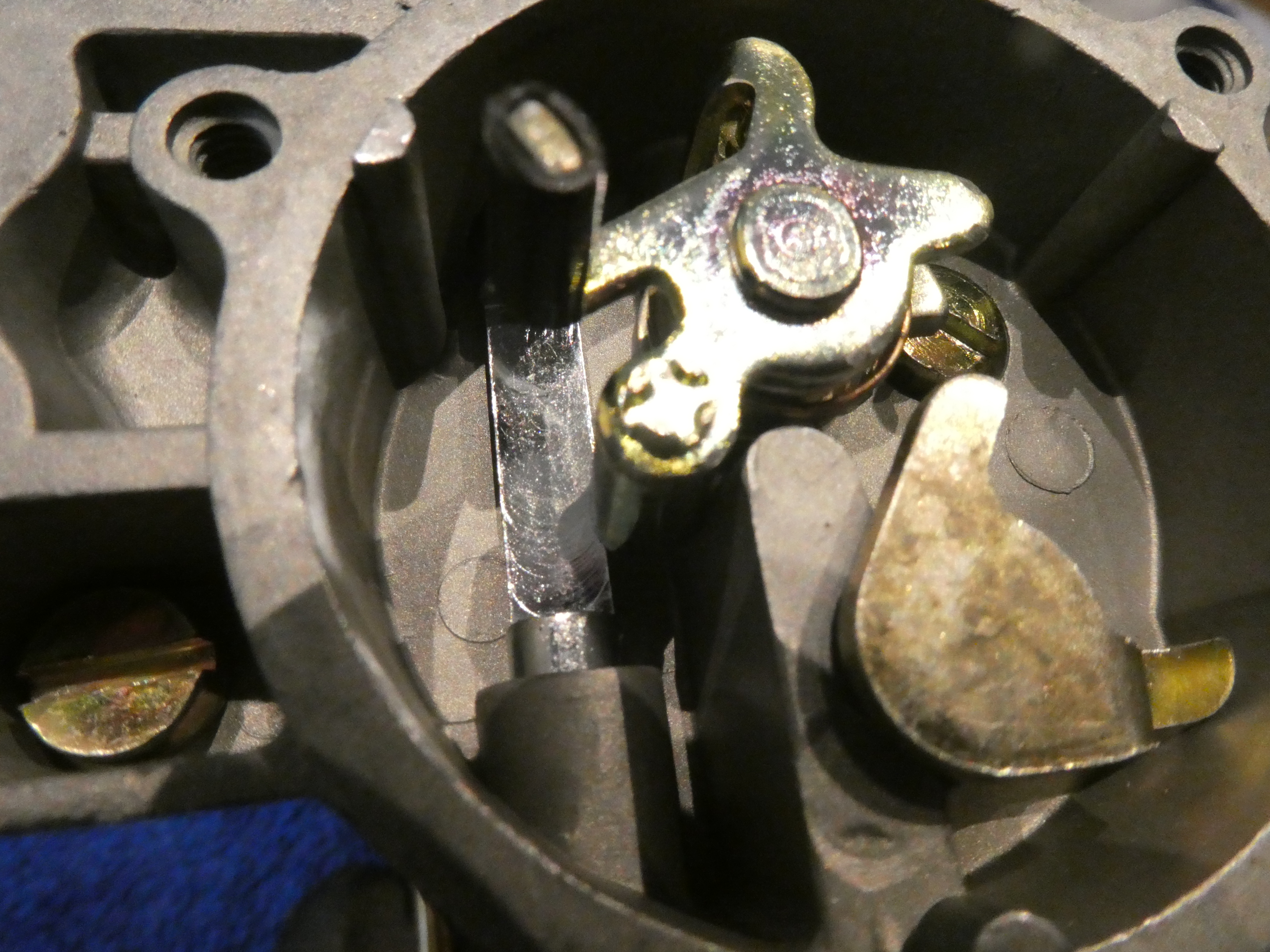 Ein lästiges Detail. Die Verstemmung der Starterklappenwelle löst sich irgendwann und muss, sofern noch möglich, wieder neu verstemmt werden. Oder doch ein klitzekleines Schweißpünktchen?