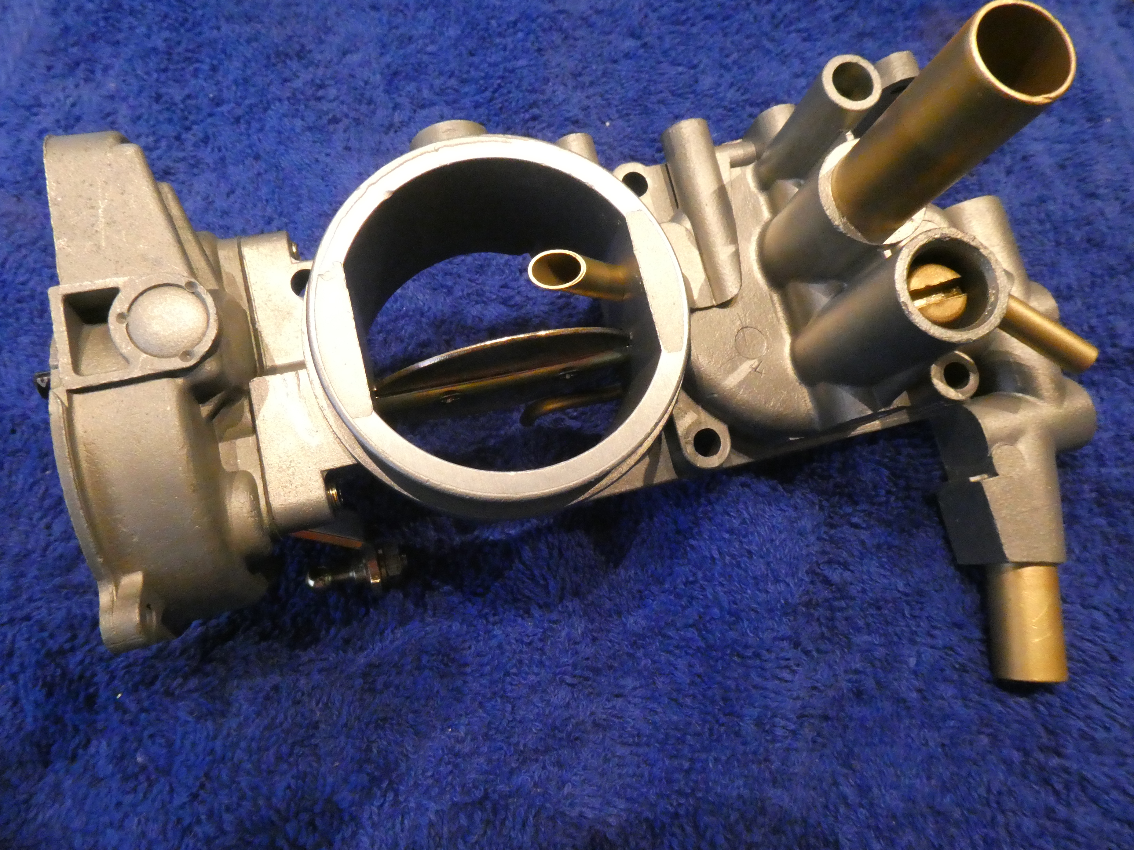 Hier die Saugrohrseite der Klappe. Es ist nur die Bohrung für die CO-Schraube sichtbar. So soll es sein.